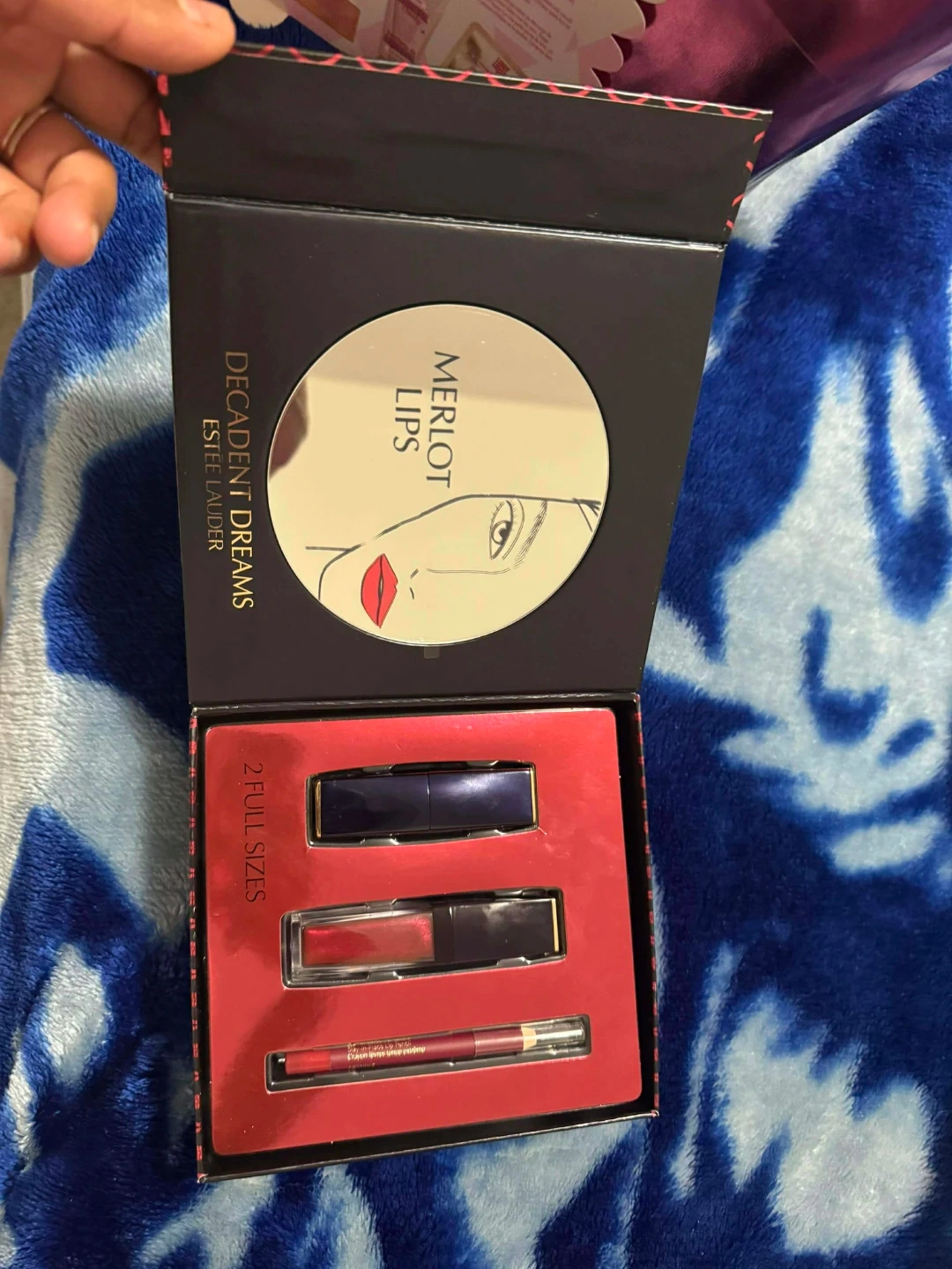 This Estee Lauder Decadent Dreams set includes two full-size lip products and one lip pencil. Merlot Lips colour. Perfect for gifting or personal use!