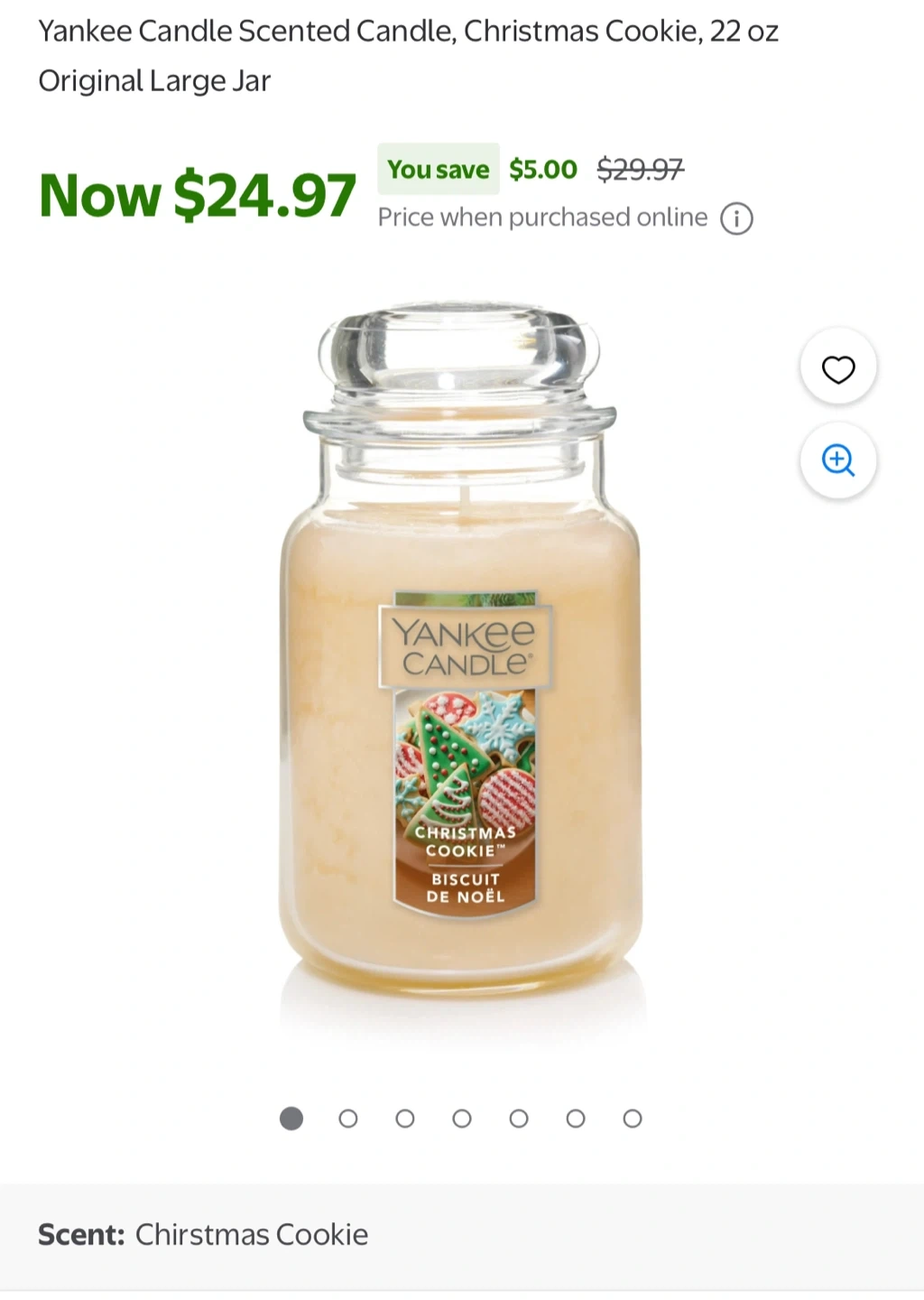 This large jar candle from Yankee Candle features the delightful "Christmas Cookie" scent. It's a 22 oz candle, perfect for bringing a festive aroma to your home. The classic glass jar design includes a lid.