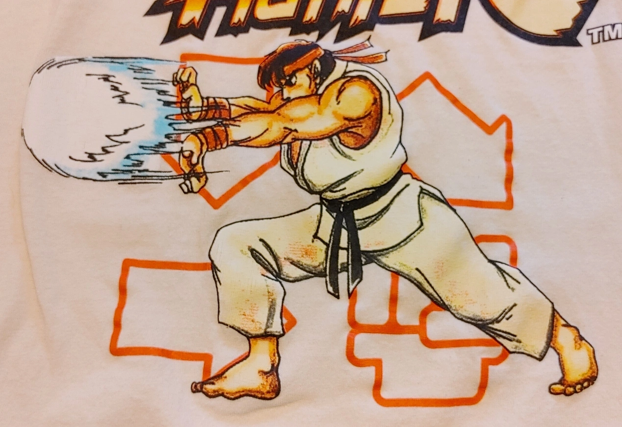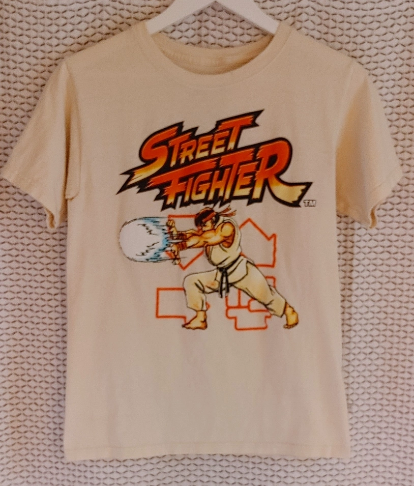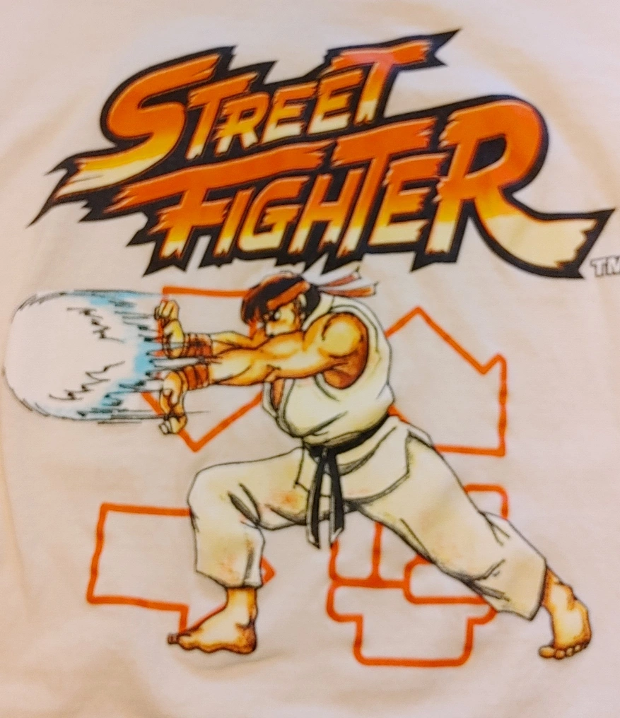 White short sleeved men's size small Street Fighter graphic t-shirt. Very good condition. No rips, stains or fraying. Smoke free home pick up Mt.Brydges cash only.