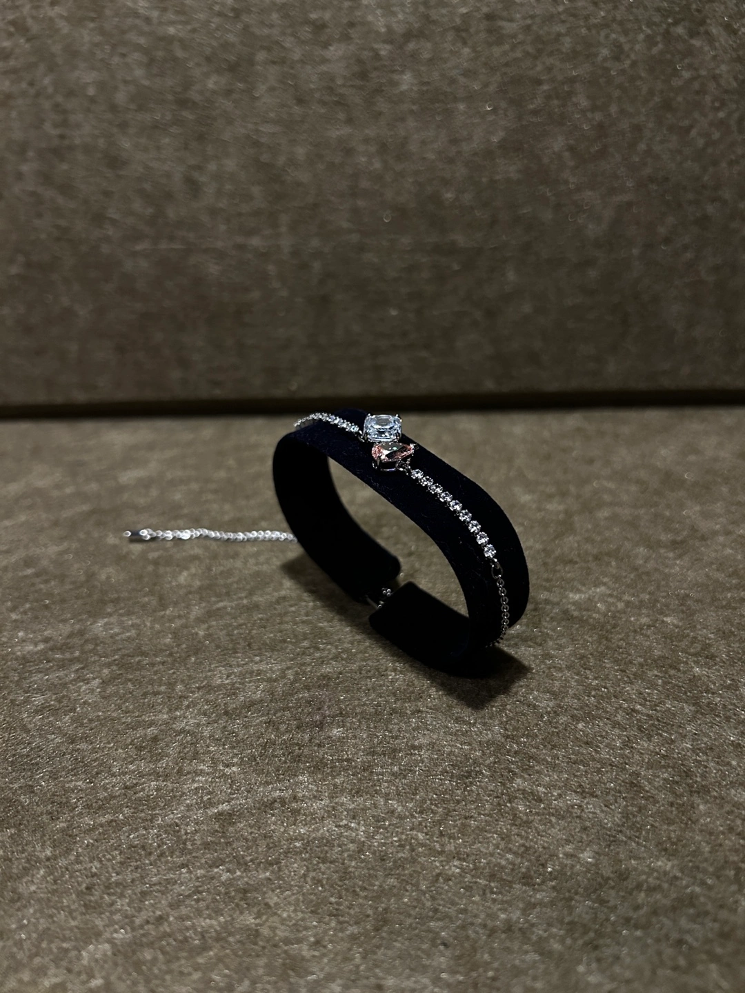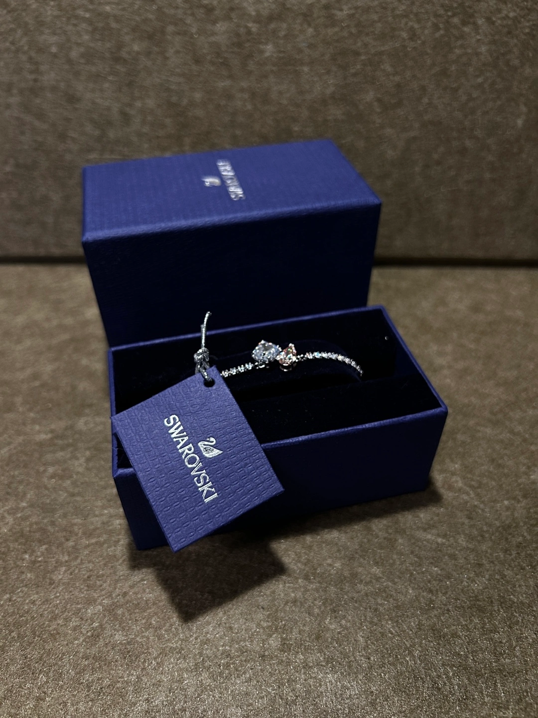Elegant Swarovski bracelet. Features a delicate chain and sparkling crystals. Adjustable sliding closure. Comes in original box.