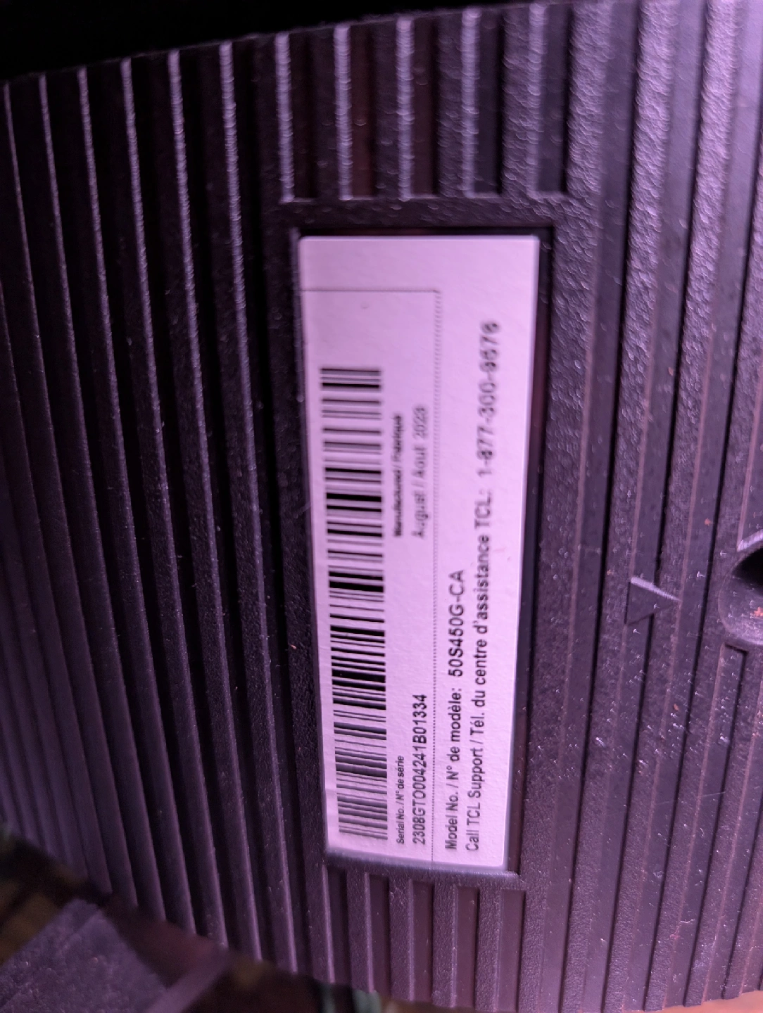 Selling a TCL 50S450G-CA 50" 4K UHD HDR Smart TV. The manufacturing date is August 2023. It's in great condition and ready for a new home!