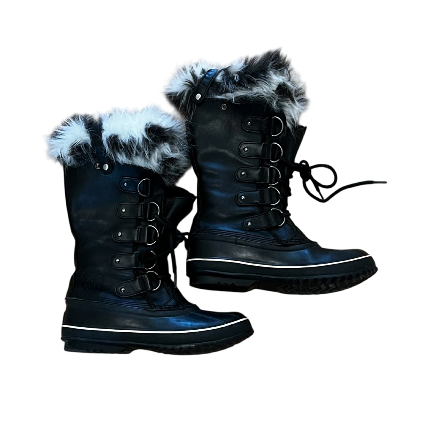 Cozy up with these Sorel Joan of Arctic Wedge II boots! They're black with a faux fur trim, perfect for braving the Canadian winter. These boots are stylish and functional for everyday wear.