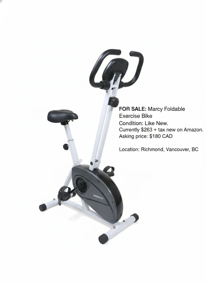 Selling a Marcy foldable exercise bike in like-new condition! It's super convenient for small spaces and easy to store. Hardly used, less then 10 times. I saw it retails for $263 + tax on Amazon. Asking $180 or OBO.