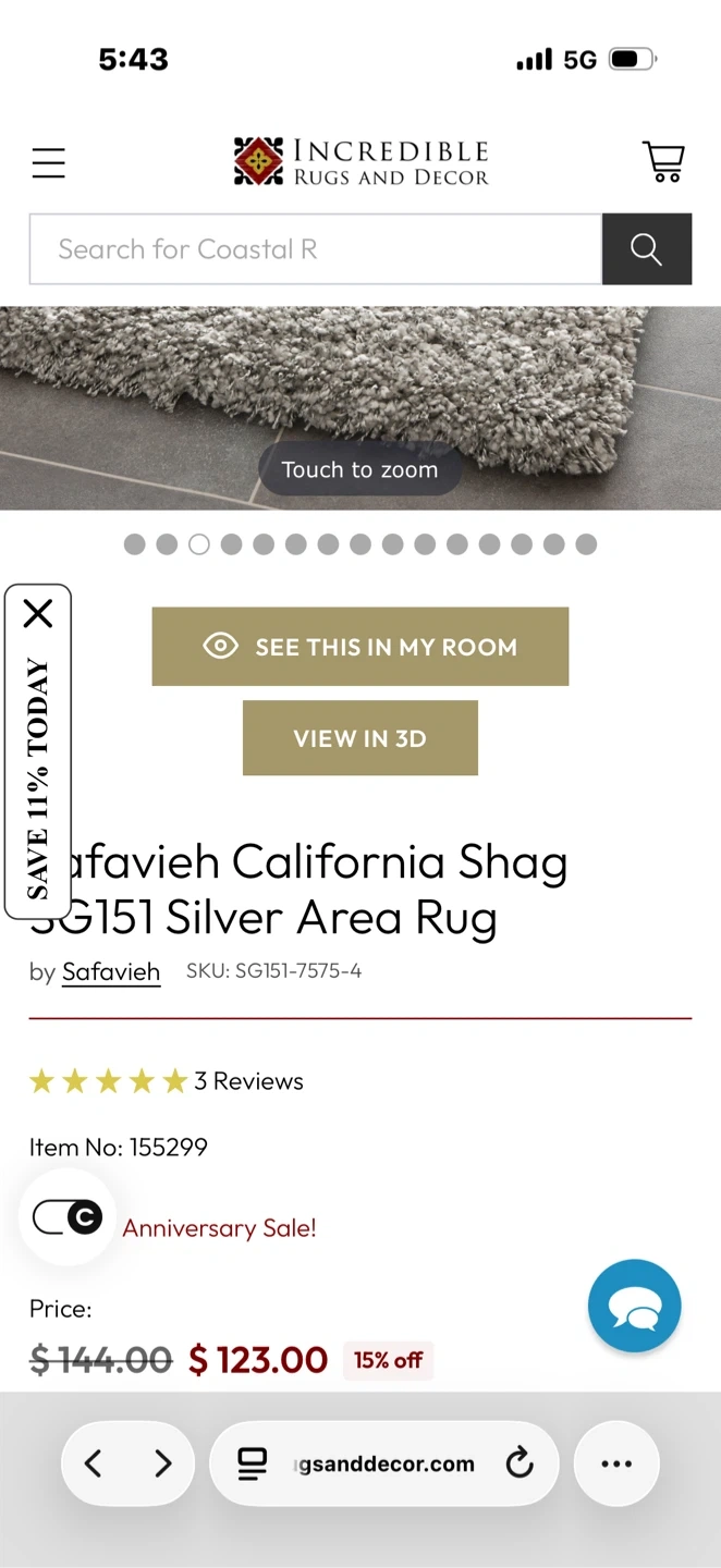 This Safavieh California Shag rug comes in a lovely silver colour. It's made from 100% polypropylene pile for a soft and cozy feel. Size is 4'x6'.