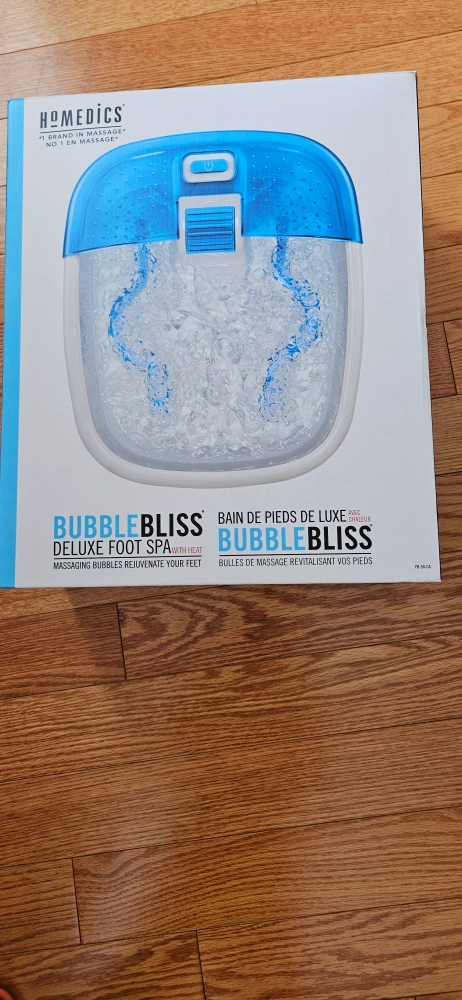 Selling a brand new Homedics Bubble Bliss Deluxe Foot Spa, still in its original box! This foot spa features massaging bubbles and soothing heat to rejuvenate your feet. Comes with 3 accessories for a customized massage experience. Perfect for relaxing after a long day!