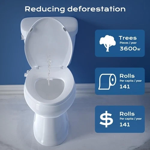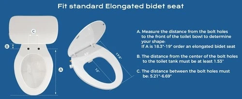 This white bidet toilet seat fits elongated toilets and measures 17.5"L x 14"W x 2"H. It can save you a lot of toilet paper and offers a comfortable and easy cleaning experience. The non-electric dual nozzles provide rear and frontal wash modes, with adjustable water pressure. The lid features a slow-closing hinge to prevent slamming and creates a peaceful bathroom environment. Non-slip bumpers are included to minimize shifting. Installation is straightforward and can be done in about 15 minutes with the included T-adapter, stainless steel hose, and other accessories. Let me know if you're interested!