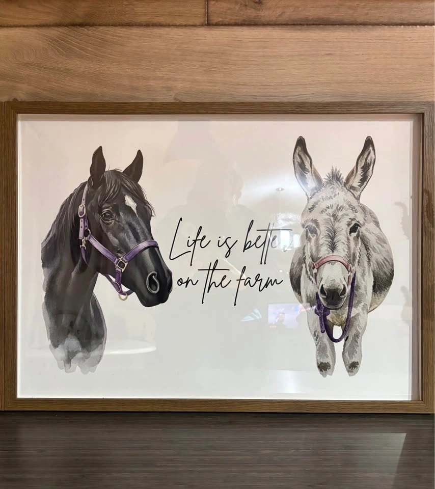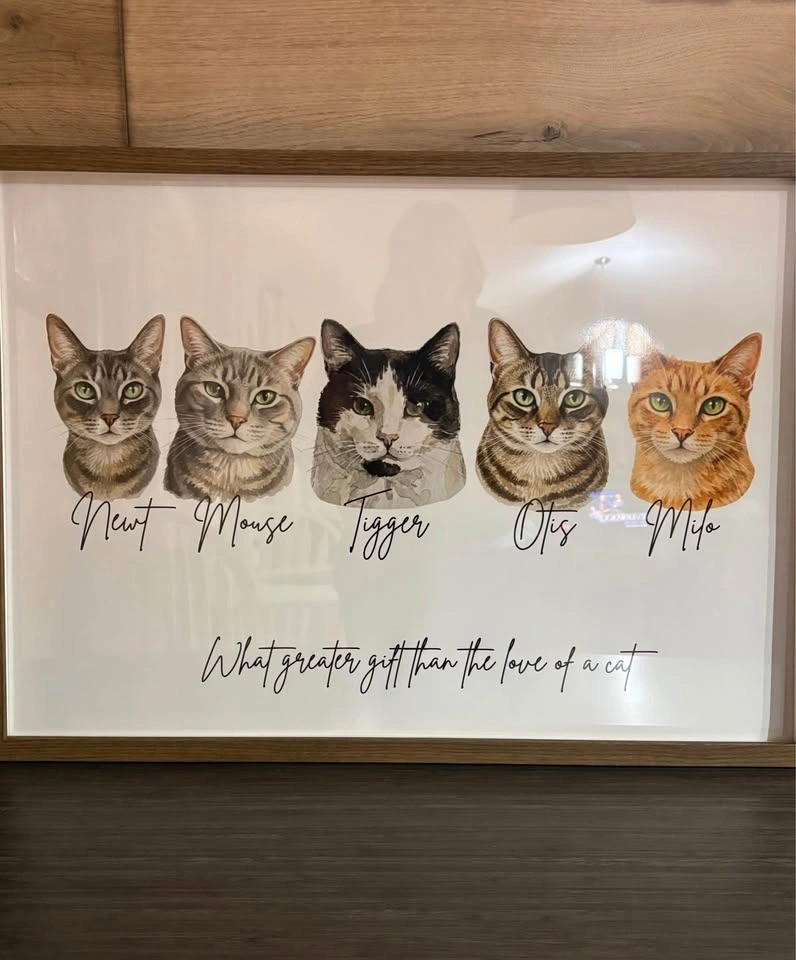 Hello! I love creating art and recently made some custom pieces for my family. I'd be happy to create a memorable gift for you too. I can draw any pet, multiple animals, or include sayings. Everything is hand-drawn!