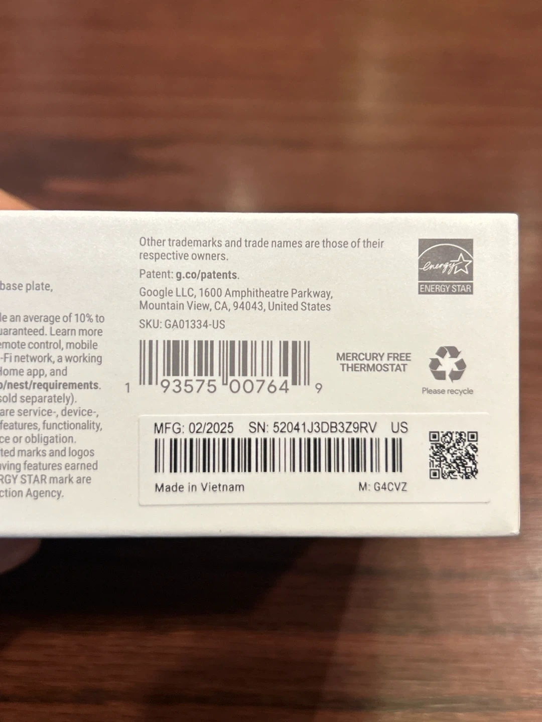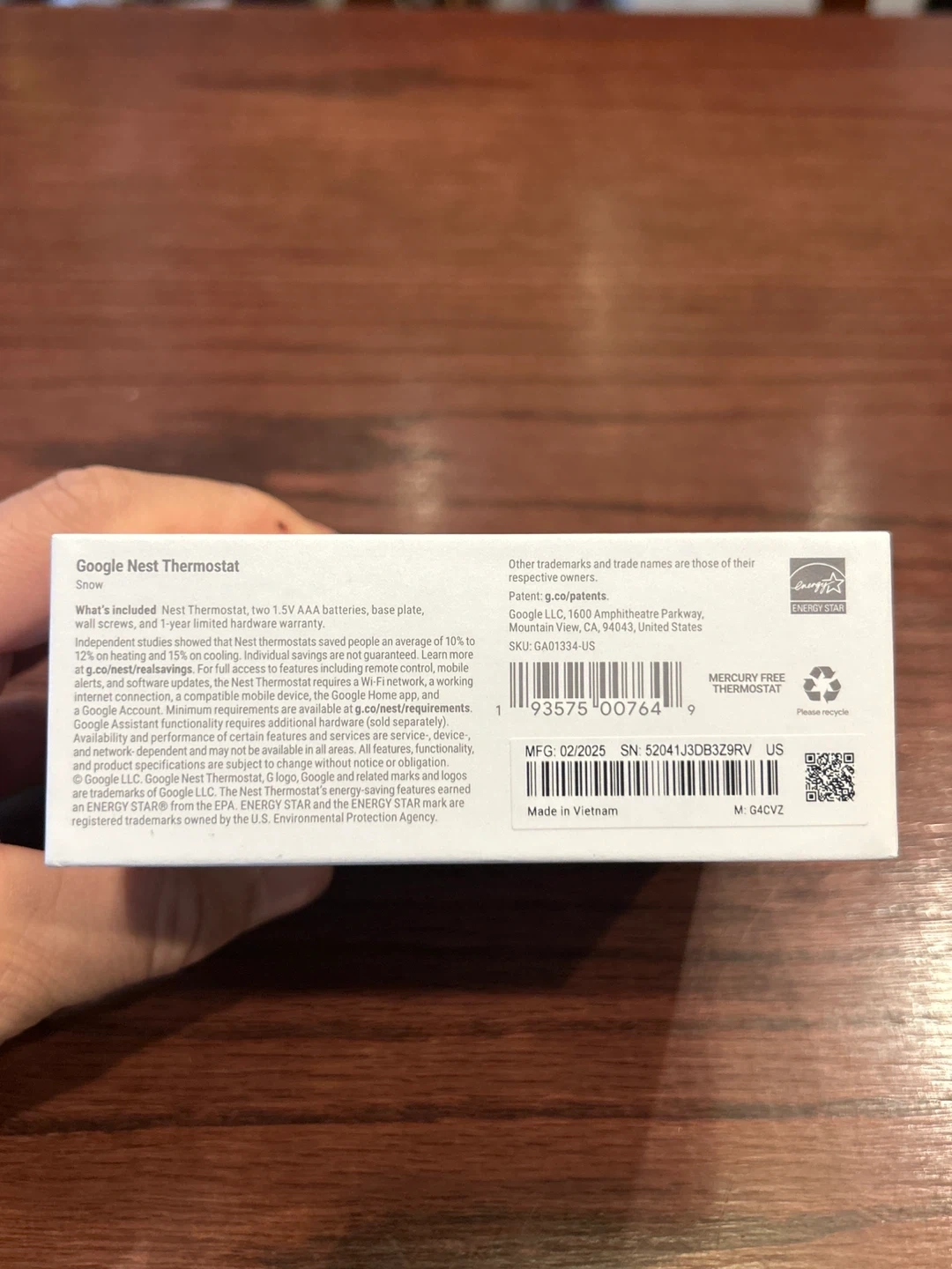 Selling a new but opened Google Nest Thermostat in Snow color. Item was incompatible with our system. It comes with two 1.5V AAA batteries, a base plate, wall screws, and a one-year limited hardware warranty. The Nest Thermostat works with most 24V systems, including gas, electric, oil, forced air, variable speed, heat pump, and radiant. It is designed to work in most homes without a common (c) wire in some systems. The box is included.