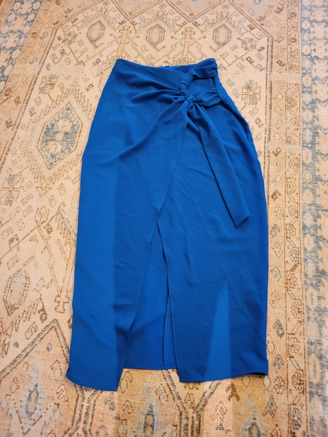Beautiful blue skirt in great condition! It features a stylish knot detail at the front and a flattering slit. Perfect for dressing up or vacation or even with sneakers and a crop top.