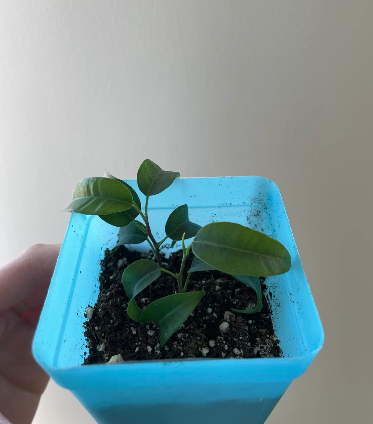 2 Small Ficus Benjamina in Blue Pot