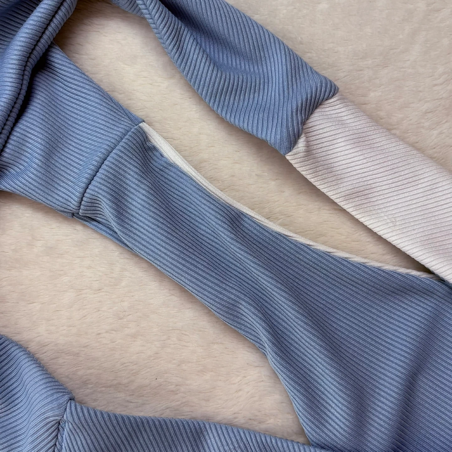 zaful, bikini, swimwear, colorblock, ribbed, triangle, highcut, highrise, blue, white, swimsuit, medium
