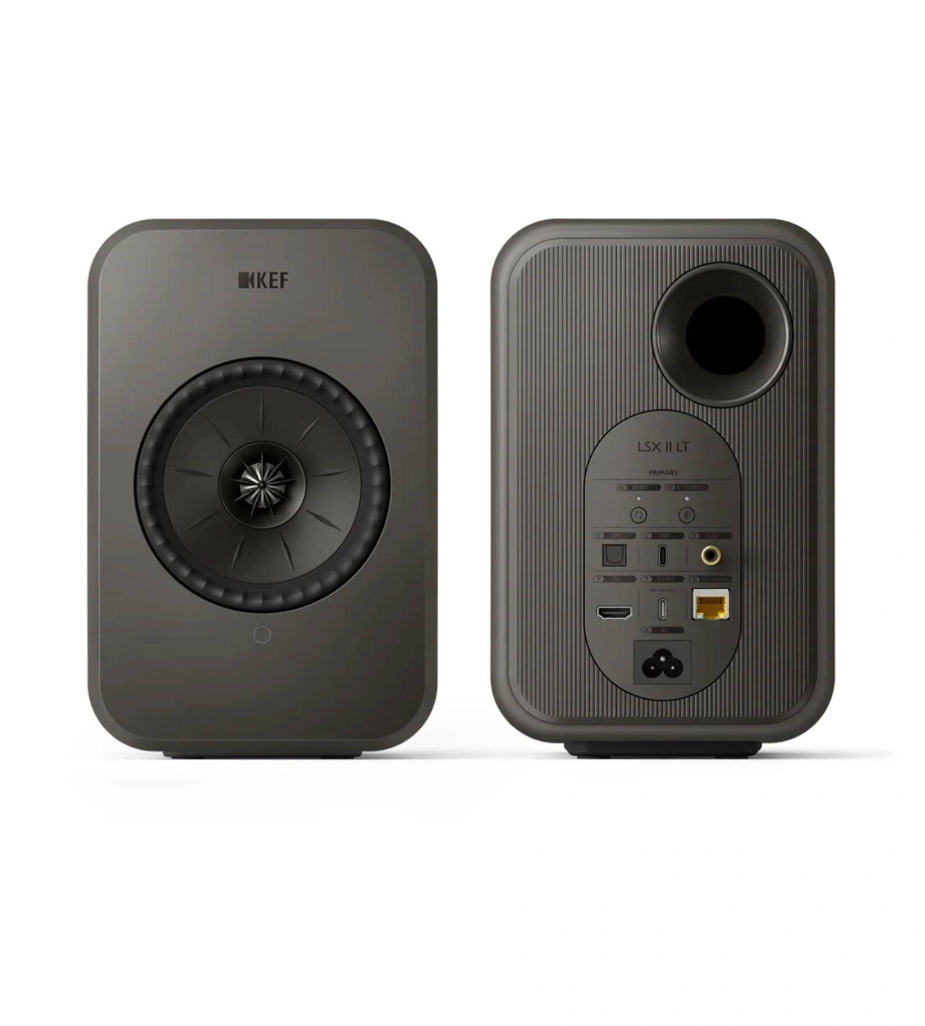KEF LSX II LT Wireless HiFi Speakers in Graphite Grey colour tone.