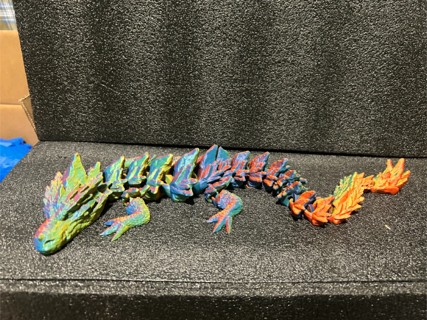 This is a cool 3D printed articulating dragon! It's very flexible and fun to play with. It's a great fidget toy or display piece