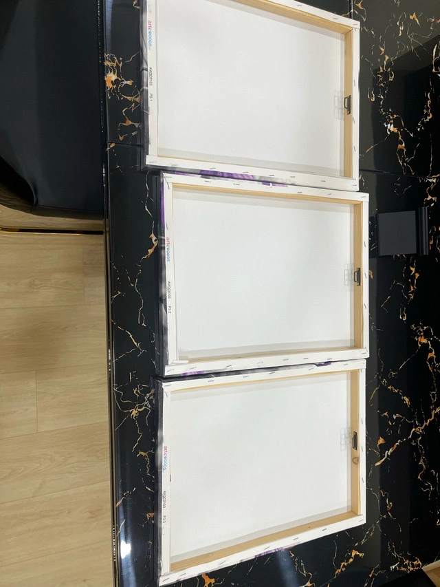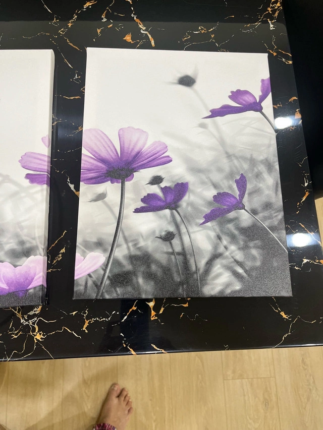 Add a touch of floral elegance to your space with this lovely set of three purple flower canvas prints! Each canvas measures 12 inches by 16 inches. These prints are in good condition and ready to brighten up any room. * Set of three canvas prints * Floral design with purple flowers * Dimensions: 12" x 16" each Looking to add a splash of colour to your home without breaking the bank? These prints are perfect! And yes, if the ad is up, they are still available! I'm pricing this set at $30.