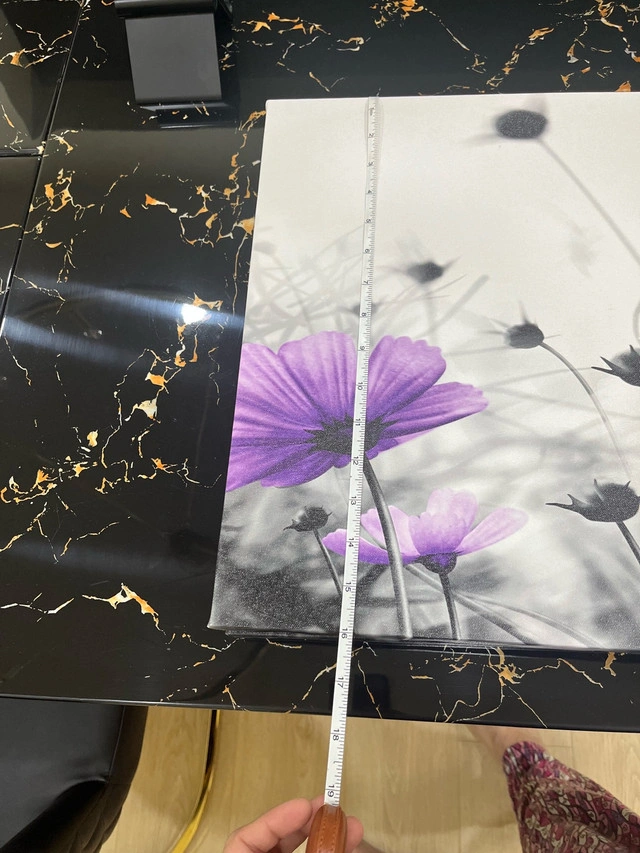 Add a touch of floral elegance to your space with this lovely set of three purple flower canvas prints! Each canvas measures 12 inches by 16 inches. These prints are in good condition and ready to brighten up any room. * Set of three canvas prints * Floral design with purple flowers * Dimensions: 12" x 16" each Looking to add a splash of colour to your home without breaking the bank? These prints are perfect! And yes, if the ad is up, they are still available! I'm pricing this set at $30.