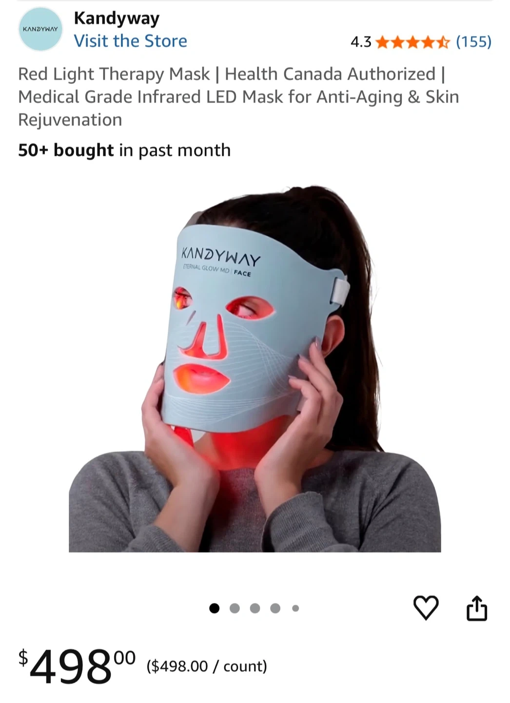 Buy & SellKandyway Eternal Glow MD Face Red Light Therapy MaskKandyway Eternal Glow MD Face Red Light Therapy Mask$250Red Light Therapy Mask | Medical Grade Infrared LED Mask for Anti-Aging & Skin Rejuvenation Condition: Open boxBrandKandywayWHERE TO MEETCheck LocationView MapSELLERverifiedJLCarluke Crescent844 reviews0 chats·1 favorites·8 viewsSEND CHAT TO SELLERHi JL! I’m interested in your listing.Hi JL! I’m interested in your listing.Get the Karrot app to chatSign In to chat