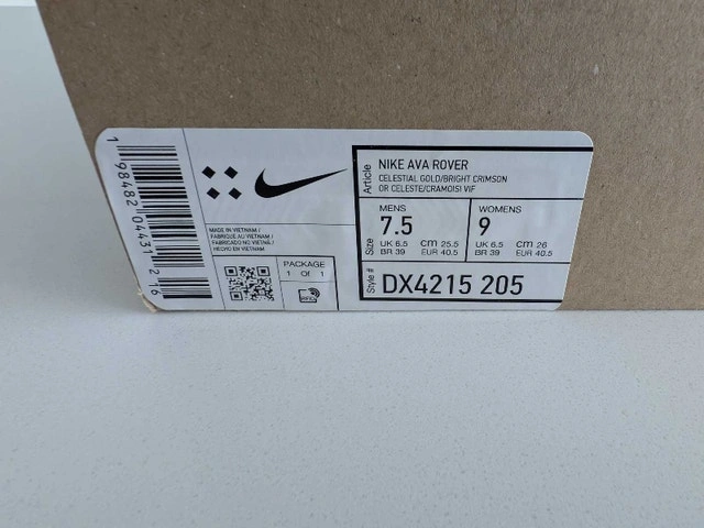 See pictures for shoe size. Performance-ready innovation, engineered for the city. The Nike Ava Rover elevates your everyday with a stacked ReactX midsole and an ultralight outsole designed with the streets in mind. Top it all off with a sleek, breathable upper that looks as good as it feels. Colour Shown: Celestial Gold/Celestial Gold/Bright Crimson/Bright Crimson Style: DX4215-205