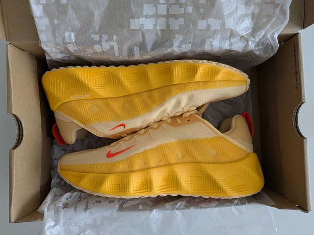 See pictures for shoe size. Performance-ready innovation, engineered for the city. The Nike Ava Rover elevates your everyday with a stacked ReactX midsole and an ultralight outsole designed with the streets in mind. Top it all off with a sleek, breathable upper that looks as good as it feels. Colour Shown: Celestial Gold/Celestial Gold/Bright Crimson/Bright Crimson Style: DX4215-205