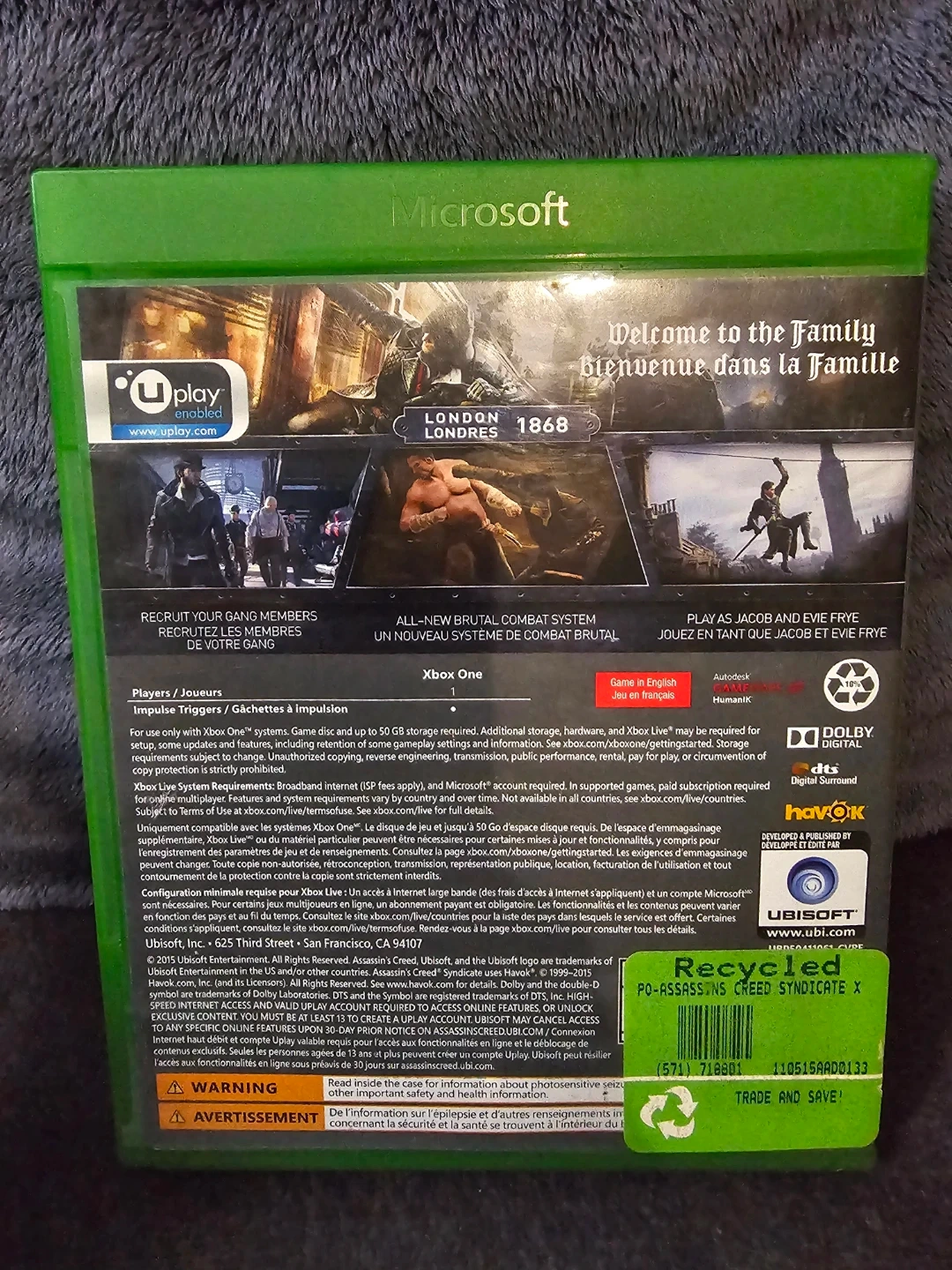 Buy & SellXbox One Assassin's Creed Syndicate GameXbox One Assassin's Creed Syndicate Game$10Assassin's Creed Syndicate for Xbox One. It's rated M for Mature 17+.ConditionLike newWHERE TO MEETM4S 1B5View MapSELLERChrisDavisville Village55948 reviews0 chats·0 favorites·3 viewsSEND CHAT TO SELLERHi Chris! I’m interested in your listing.Hi Chris! I’m interested in your listing.Get the Karrot app to chatSign In to chat