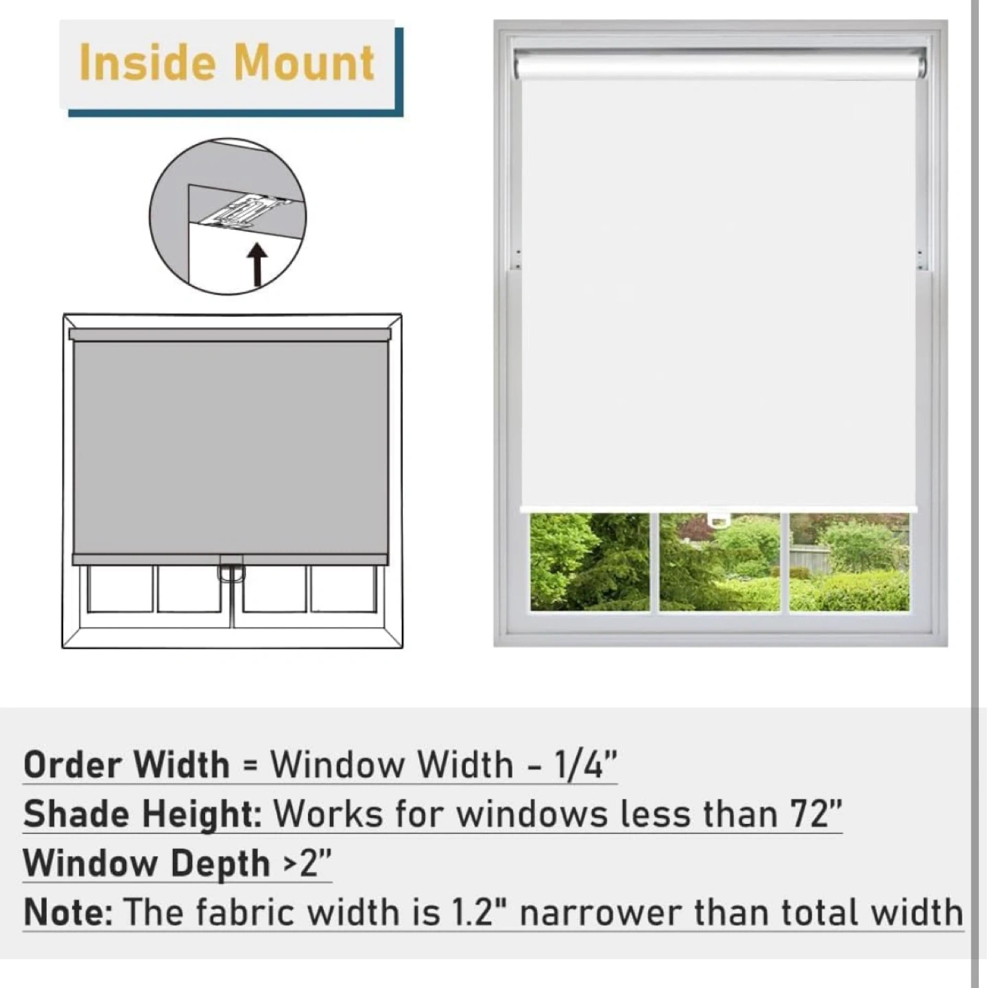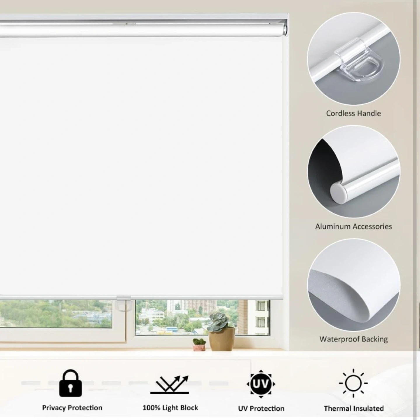 KCO Cordless Blackout Roller Blind Window Shades Waterproof UV Protection Roller Blinds for Bathroom Kitchen Bedroom,43" W x 72" L(109W x 183H cm), White