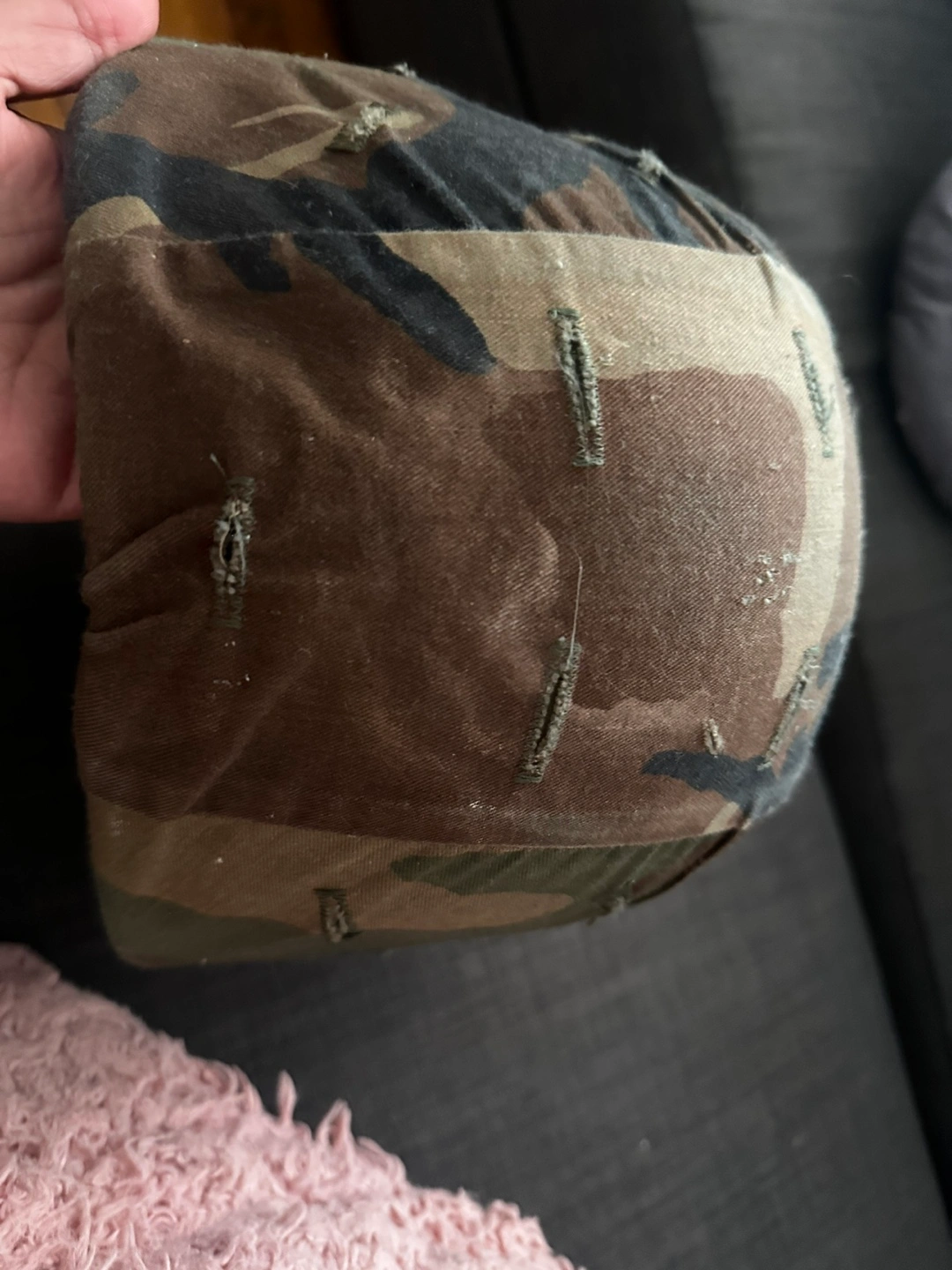Selling a camouflage military helmet. It shows some signs of wear, but it's in overall good condition,Holds up US UNICOR ARMY PASGT used Helmet with strap with its Camo cover M-5 DLA100-85,Serious buyers,Pick up only,No shipping. Cash preferred.Open for offers.First come first served.