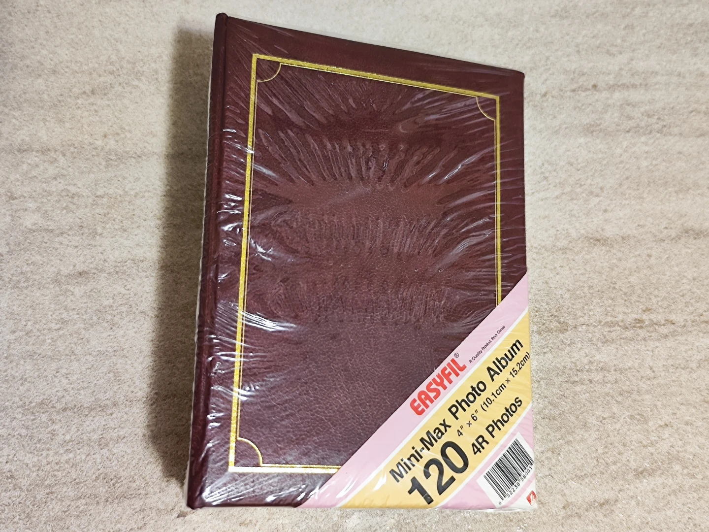 EASYFIL Mini-Max Photo Album holds 120 photos. Slip-in pockets for 4"x6" photos. Booktype album with memo cards and negative pocket. Album dimensions are 4"x6" (10.1cm x 15.2cm).