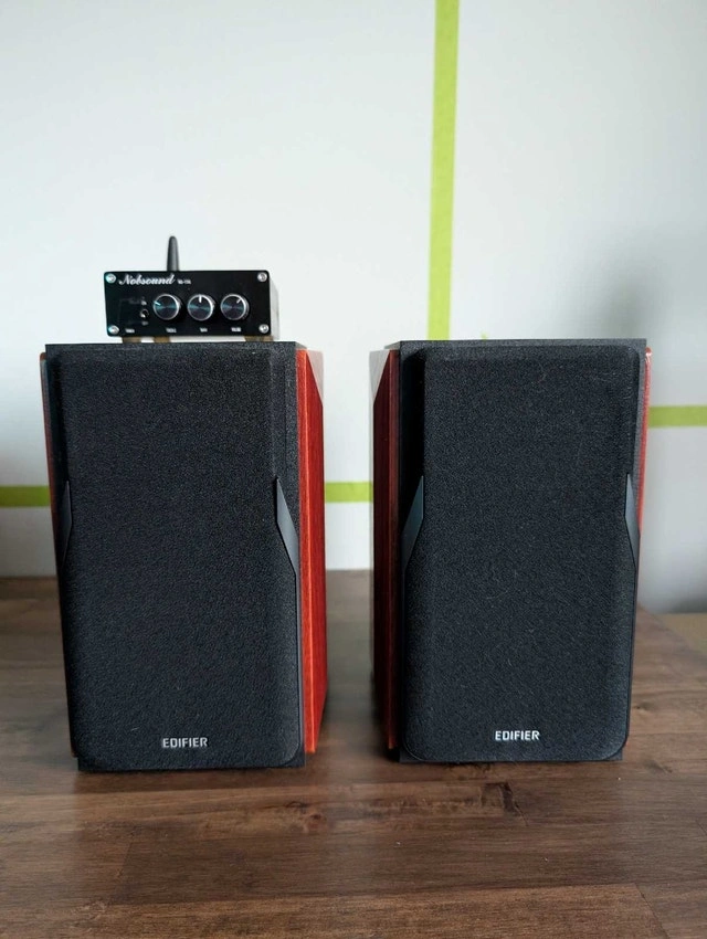 Excellent condition Edifier P17 Bookshelf Speakers with NobSound Bluetooth AMP. Includes all cables and speaker wire. Everything you need to get started. Great for a TV setup, Wireless Speaker setup or a record player. Please message with any questions and thanks for taking a look.
