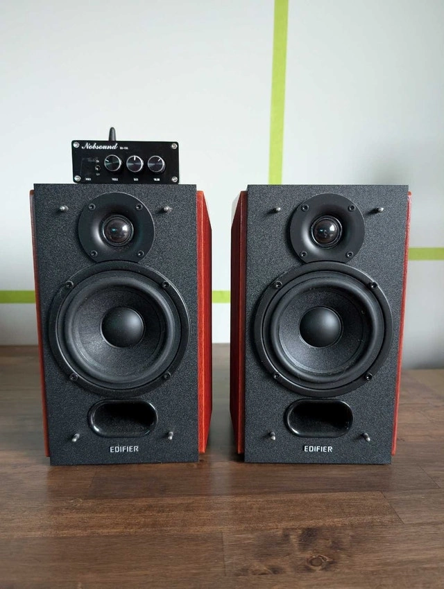 Excellent condition Edifier P17 Bookshelf Speakers with NobSound Bluetooth AMP. Includes all cables and speaker wire. Everything you need to get started. Great for a TV setup, Wireless Speaker setup or a record player. Please message with any questions and thanks for taking a look.