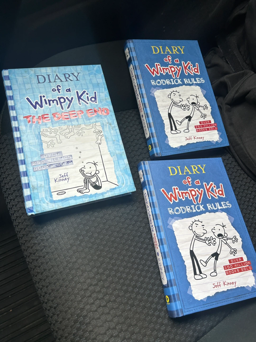Diary of a Wimpy Kid The Deep End and two copies of Rodrick Rules by Jeff Kinney. These books are part of a popular children's series. Great for young readers!