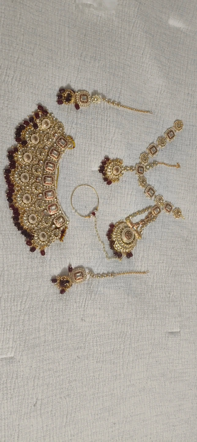 Selling a stunning red and gold Indian/Pakistani bridal jewellery set, designed to perfectly match a traditional red & gold bridal gharara. This complete set gives a royal, luxurious look and is perfect for weddings, nikkah, receptions, or engagement ceremonies.
