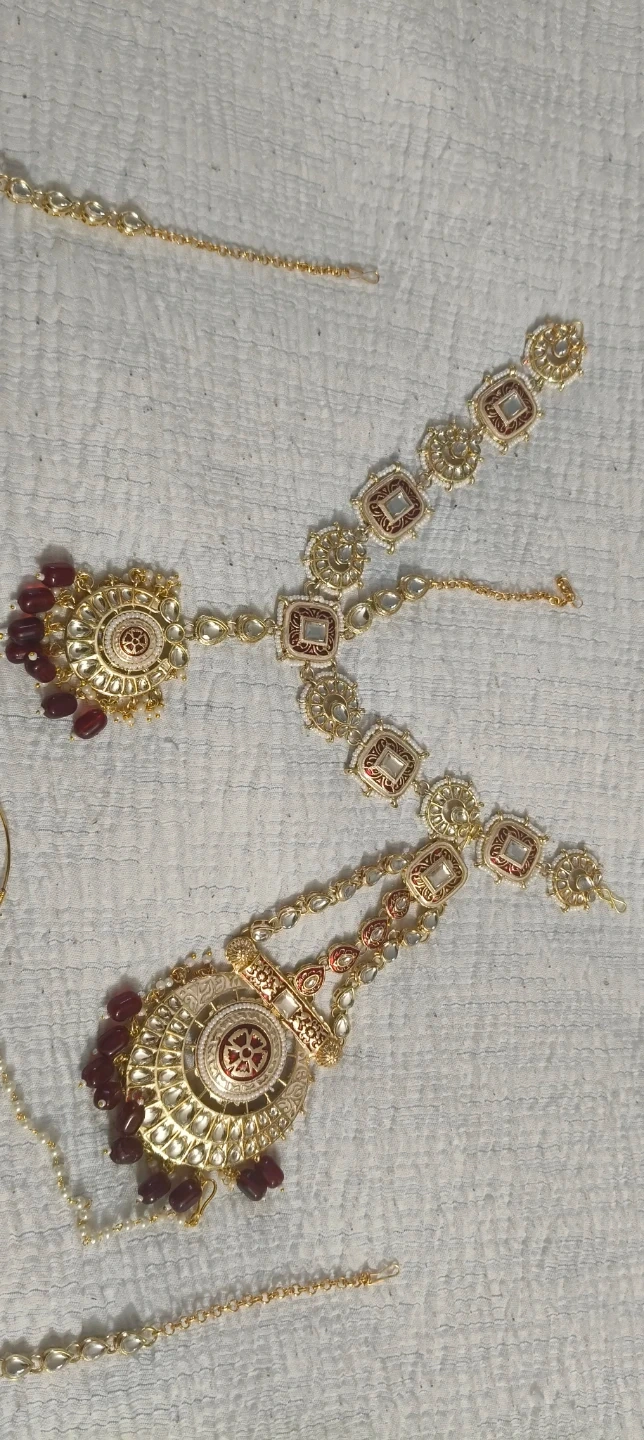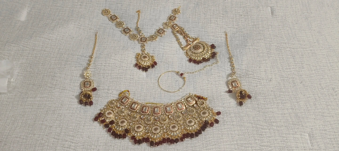 💎 Bonus: This jewellery is designed to match a luxury red & gold bridal gharara (listed separately). Purchase both together for a full, high-end bridal look.