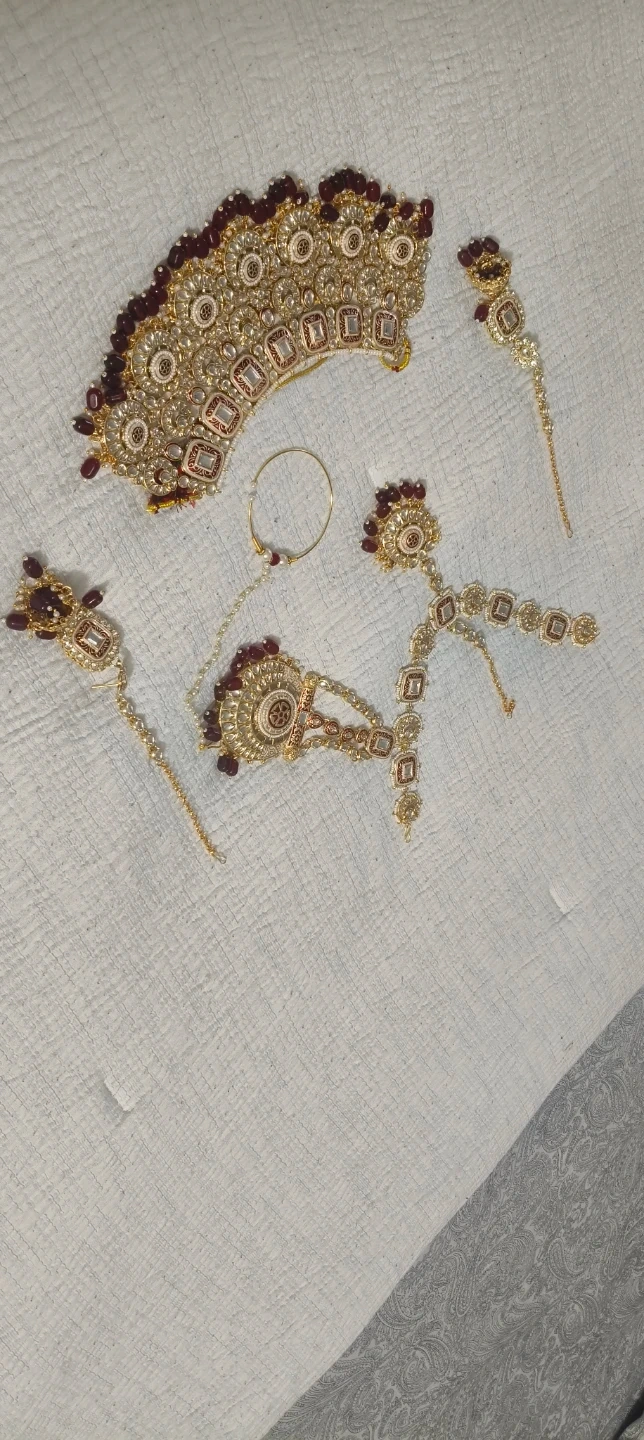 Selling a stunning red and gold Indian/Pakistani bridal jewellery set, designed to perfectly match a traditional red & gold bridal gharara. This complete set gives a royal, luxurious look and is perfect for weddings, nikkah, receptions, or engagement ceremonies.