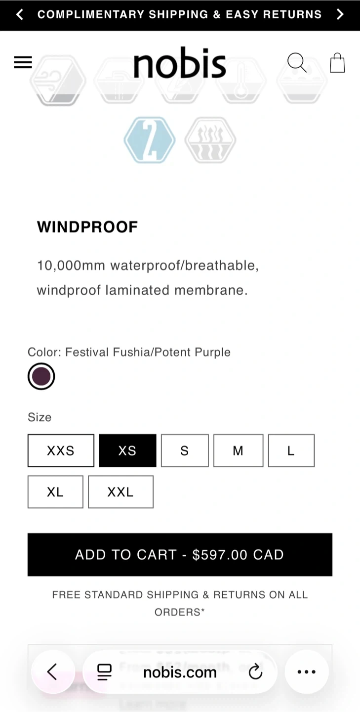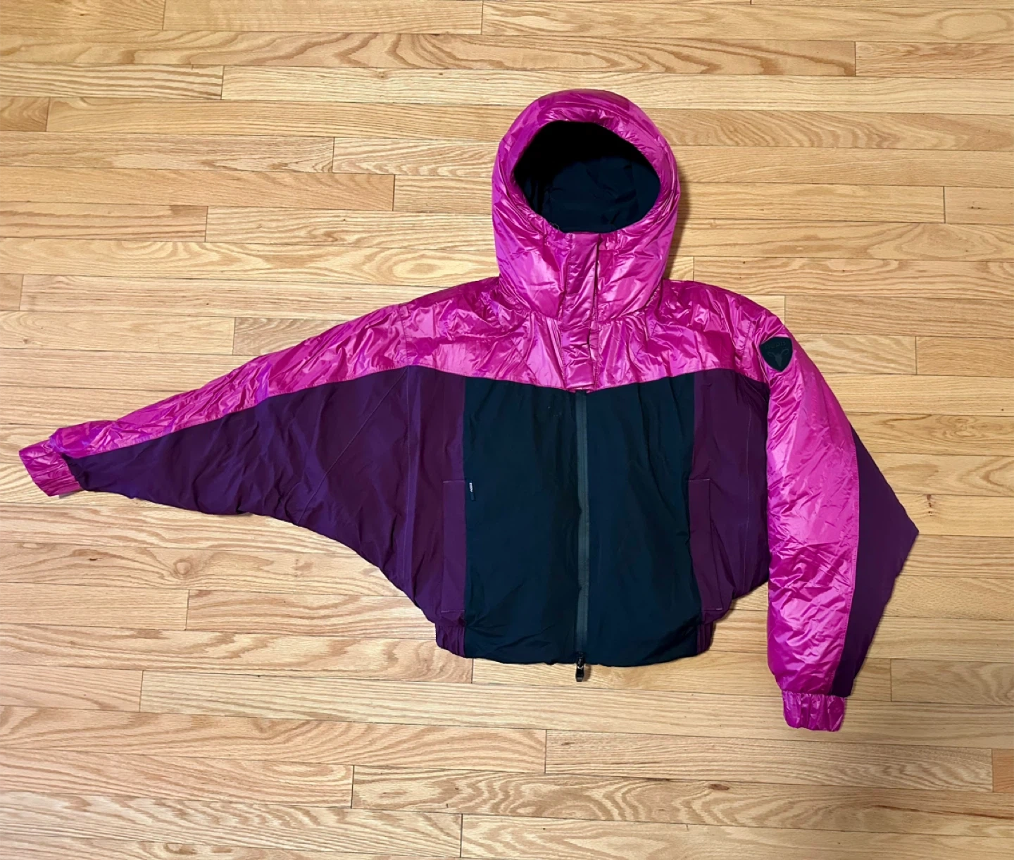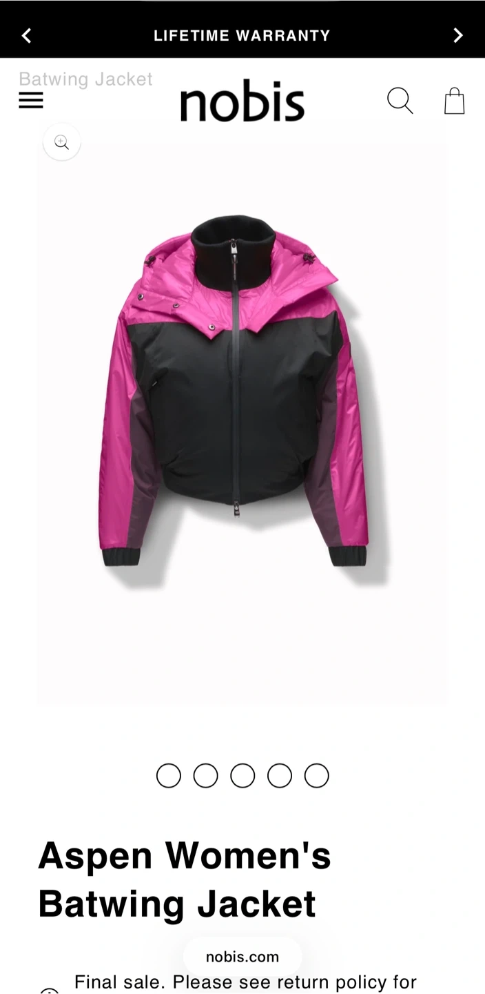 Selling a Nobis Aspen puffer jacket in size XS/TP. The jacket features a stylish colour block design with magenta and black. Perfect for staying warm and fashionable during the colder months!