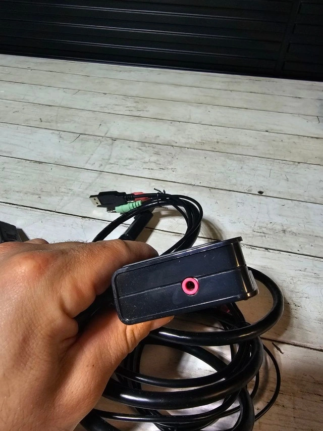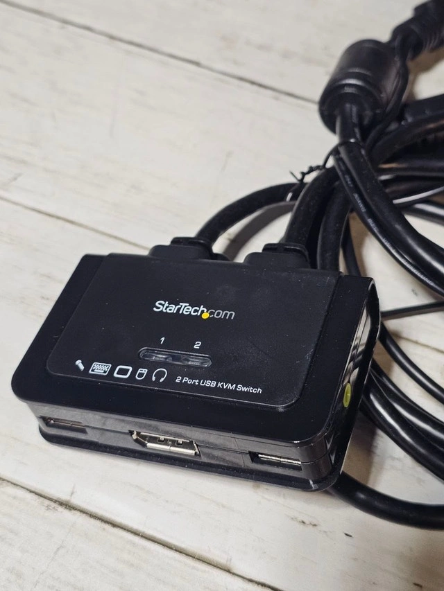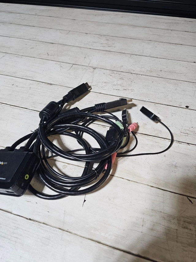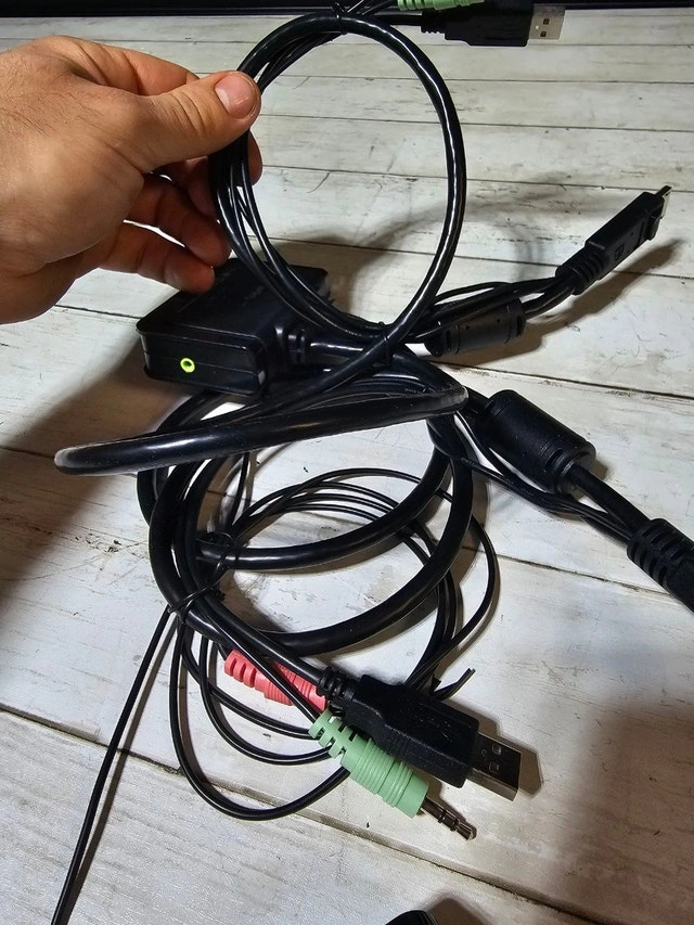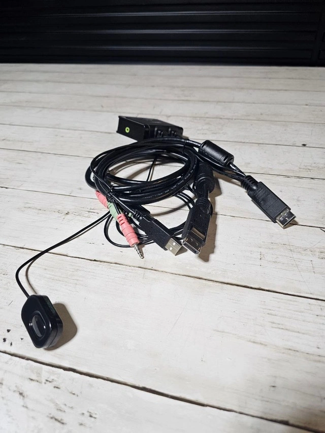 Control two HDMI, USB equipped PCs with a single monitor, keyboard, mouse, and audio set. Supports HD resolutions (1080p, 1920x1200). Switch PCs via push-button, hot keys, or switching software. Features a space-saving, compact design with integrated KVM and remote switch cables. Condition: Used - Like new. For Sale By: Owner.