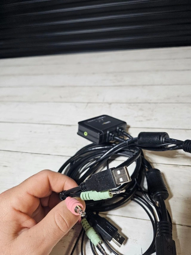 Control two HDMI, USB equipped PCs with a single monitor, keyboard, mouse, and audio set. Supports HD resolutions (1080p, 1920x1200). Switch PCs via push-button, hot keys, or switching software. Features a space-saving, compact design with integrated KVM and remote switch cables. Condition: Used - Like new. For Sale By: Owner.