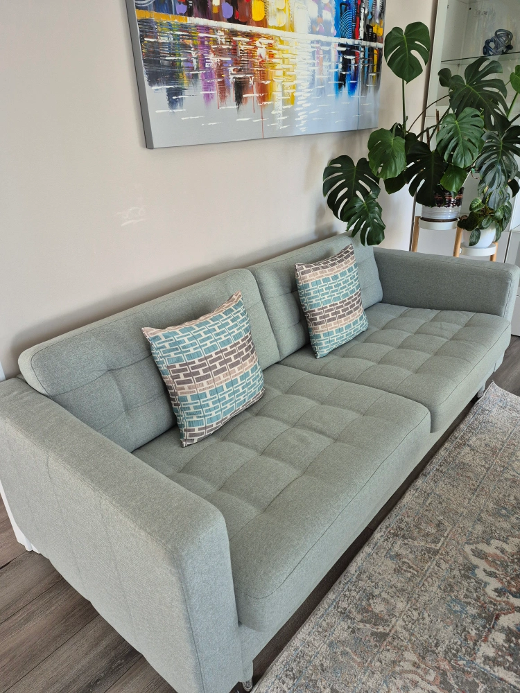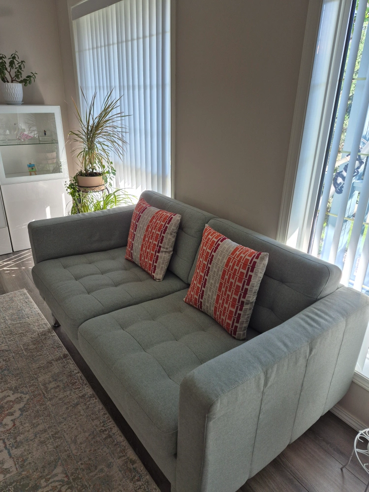 Selling a comfy 2 grey sofa. It's in great condition and ready for a new home! Perfect for lounging and adding a touch of style to your living room.