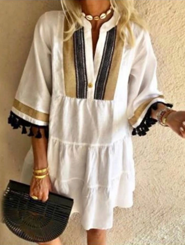 A lovely A-line mini dress perfect for your next vacation. It's a comfortable and stylish choice for warm weather. Feel free to message if you have any questions!