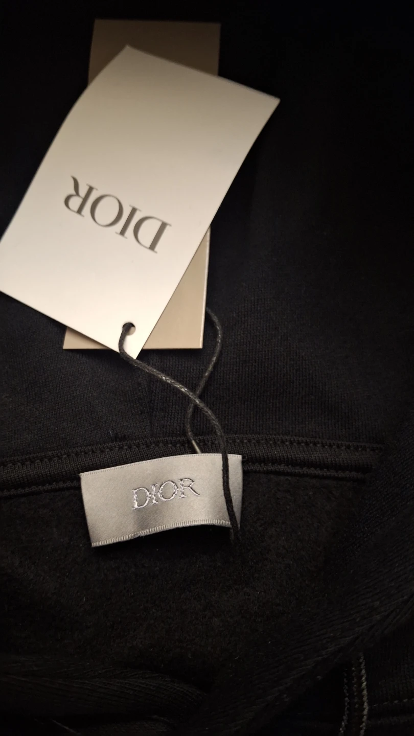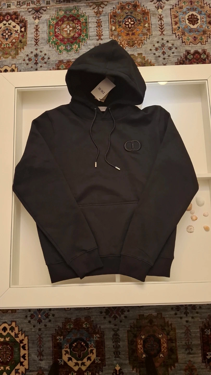 DIOR black hoodie with iconic CD logo embroidery. Is a size S. Machine wash inside out.