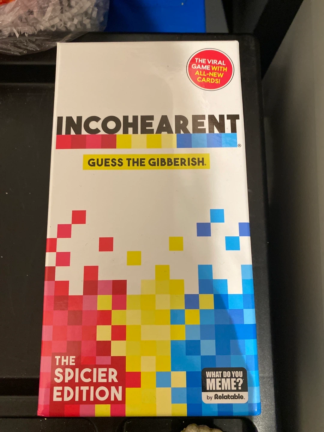 This is Incohearent: The Spicier Edition card game by Relatable. It's the viral game with all-new cards. Guess the gibberish!