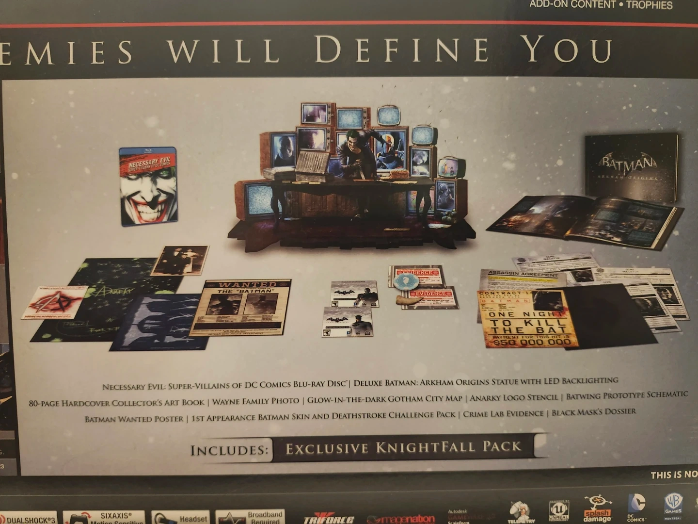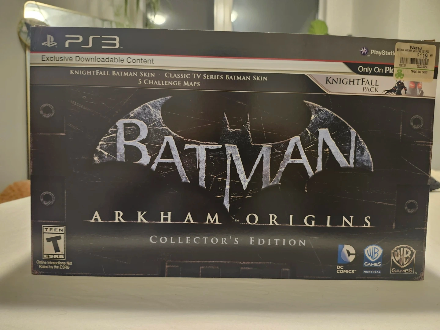 This is the Batman Arkham Origins Collector's Edition for PS3. It includes the game, a statue with LED backlighting, an art book, and exclusive physical items. Too many items to show so I took a photo of the back of the box that has all the items layed out. All items are inside the box and included. This is very rare and in almost brand new condition.
