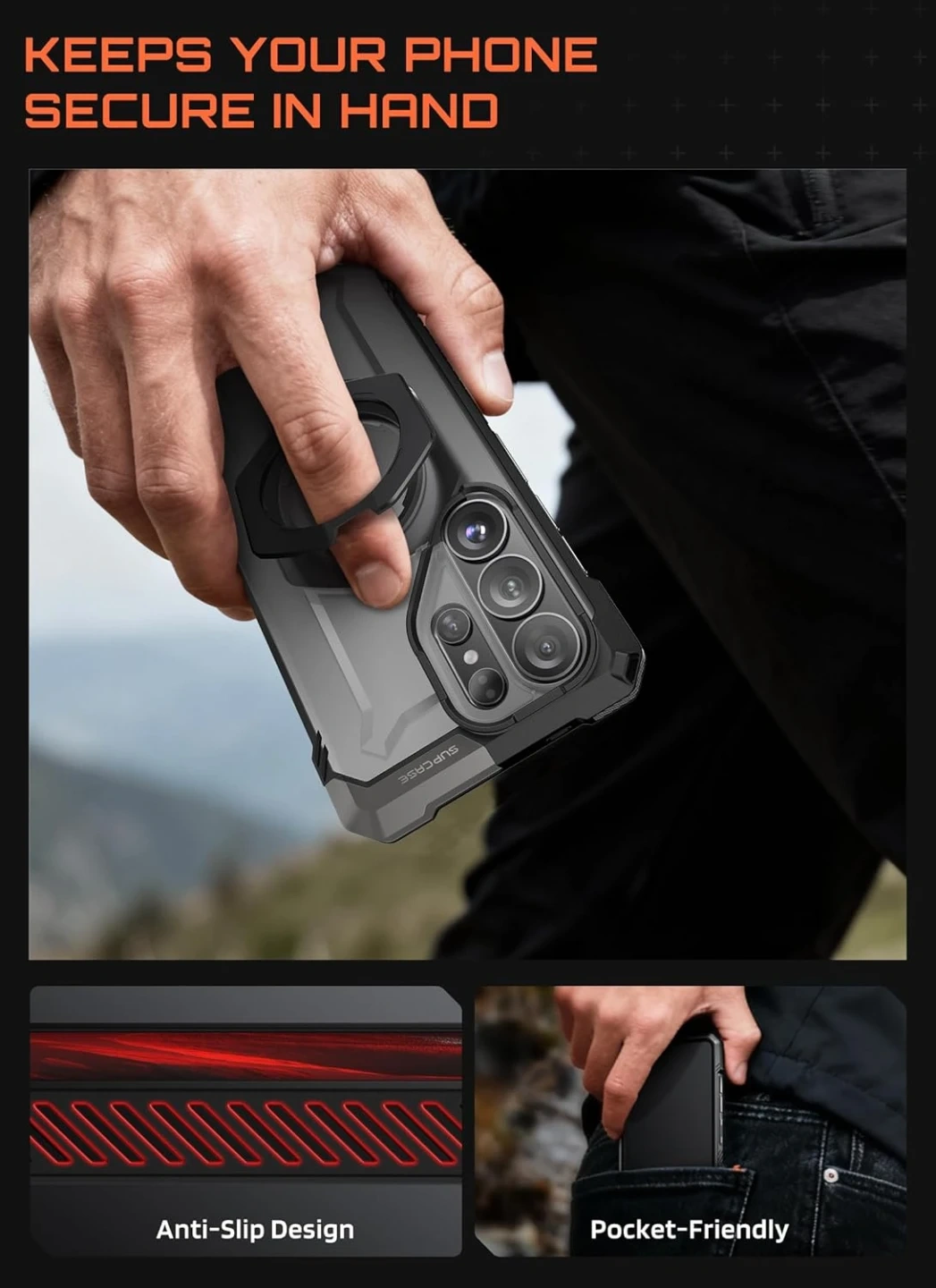 Our Samsung S26 Ultra case features a non-slip texture on both sides to enhance grip, providing a comfortable and secure hold to help prevent accidental drops.