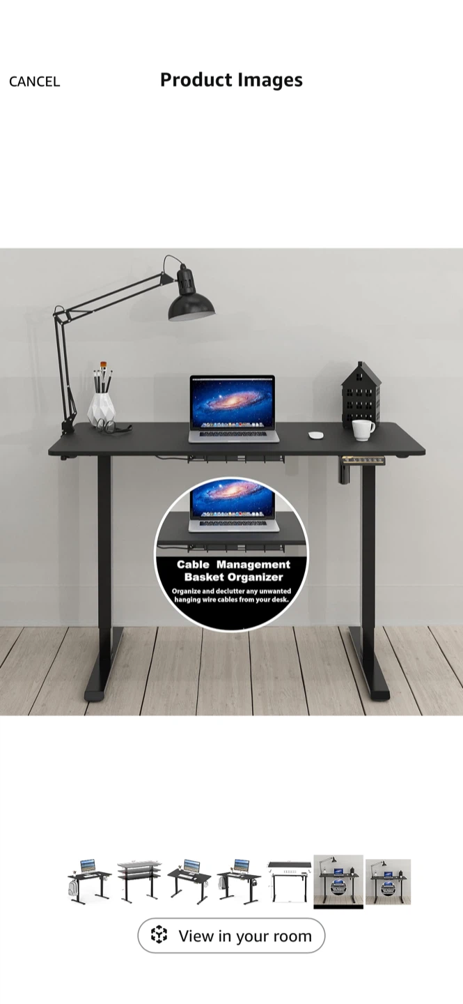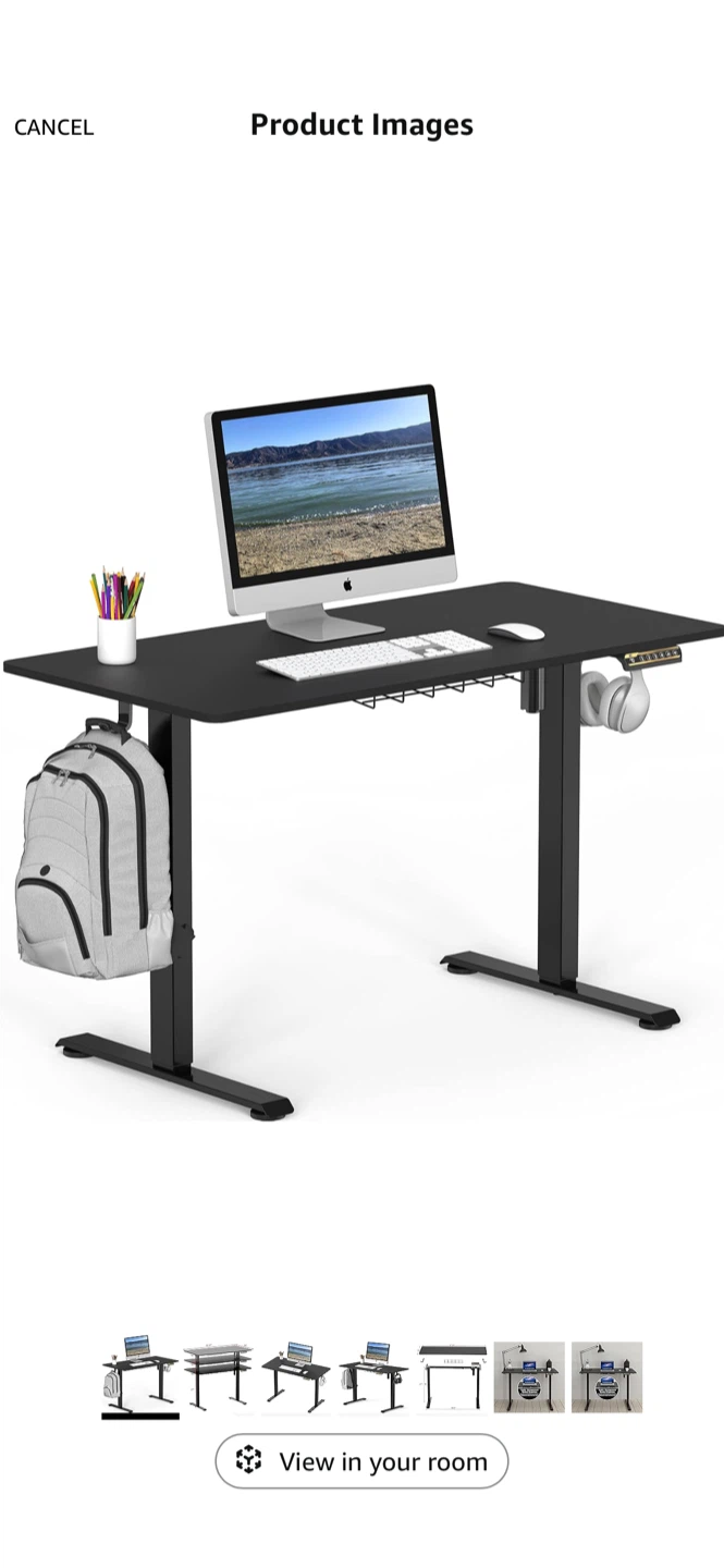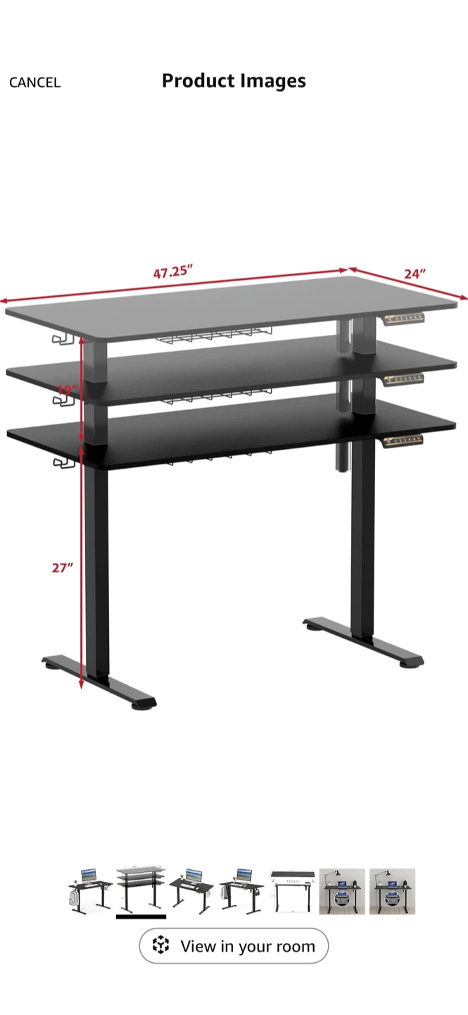 Selling a black adjustable standing desk. The dimensions are 47.25 inches by 24 inches. Great for a home office or gaming setup!