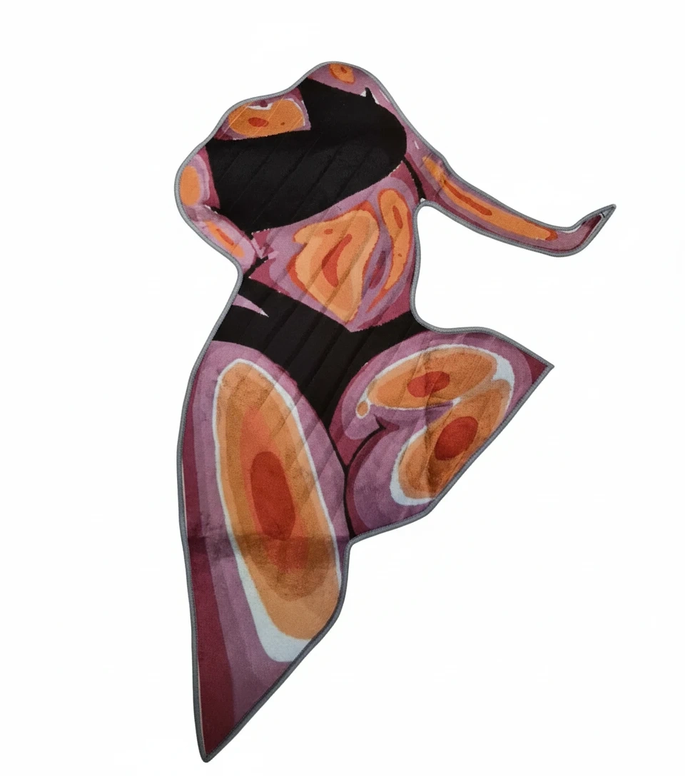 Make a statement in your space with this stunning abstract "heat map" style rug. Featuring a vibrant, thermal-inspired silhouette of the female form, this piece is the perfect blend of modern art and functional home decor.