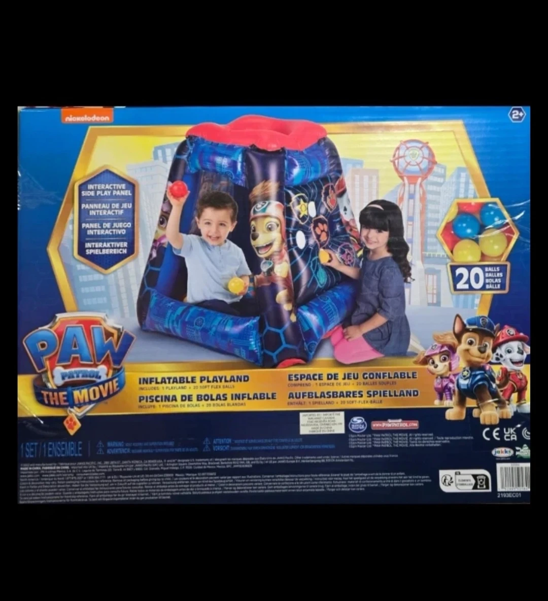 This Paw Patrol The Movie inflatable playland is perfect for little ones! It features an interactive side play panel. Includes 20 soft flex balls for extra fun. It's great for indoor or outdoor play!