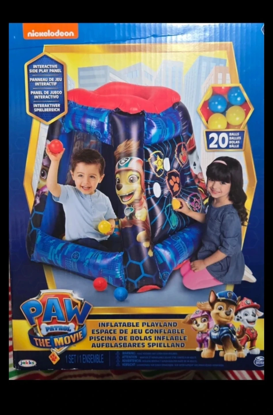 This Paw Patrol The Movie inflatable playland is perfect for little ones! It features an interactive side play panel. Includes 20 soft flex balls for extra fun. It's great for indoor or outdoor play!