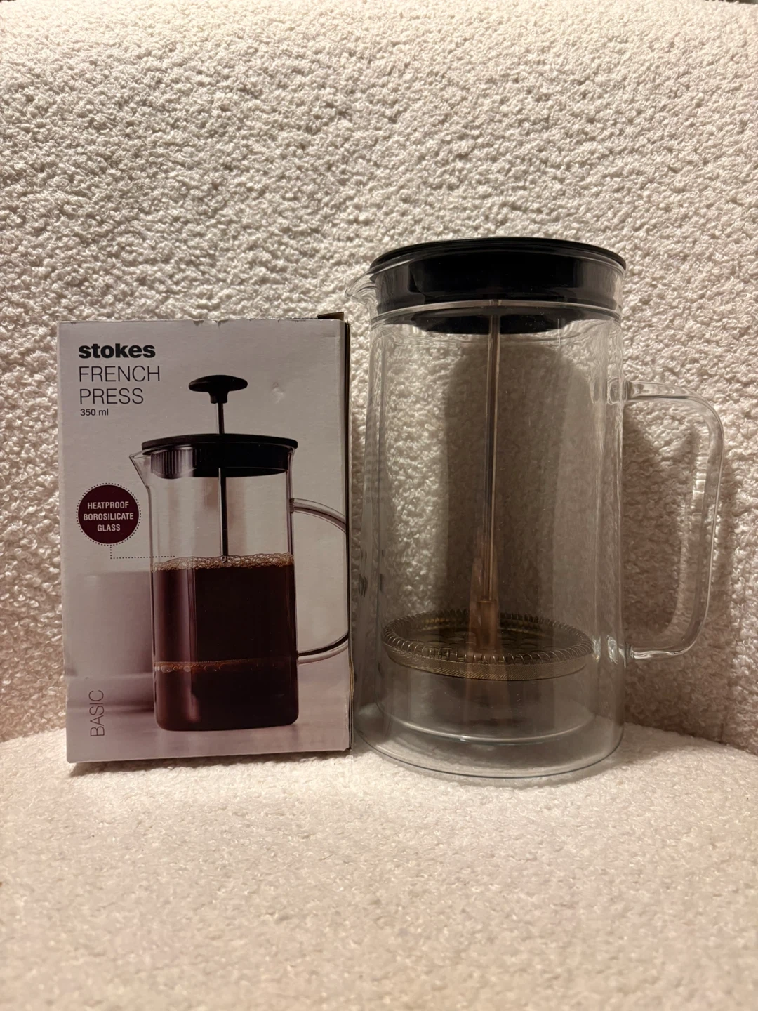 This Stokes French Press is made from heatproof borosilicate glass. It's designed for brewing coffee or tea. The 350 ml and 500 ml capacity is great for a serving.