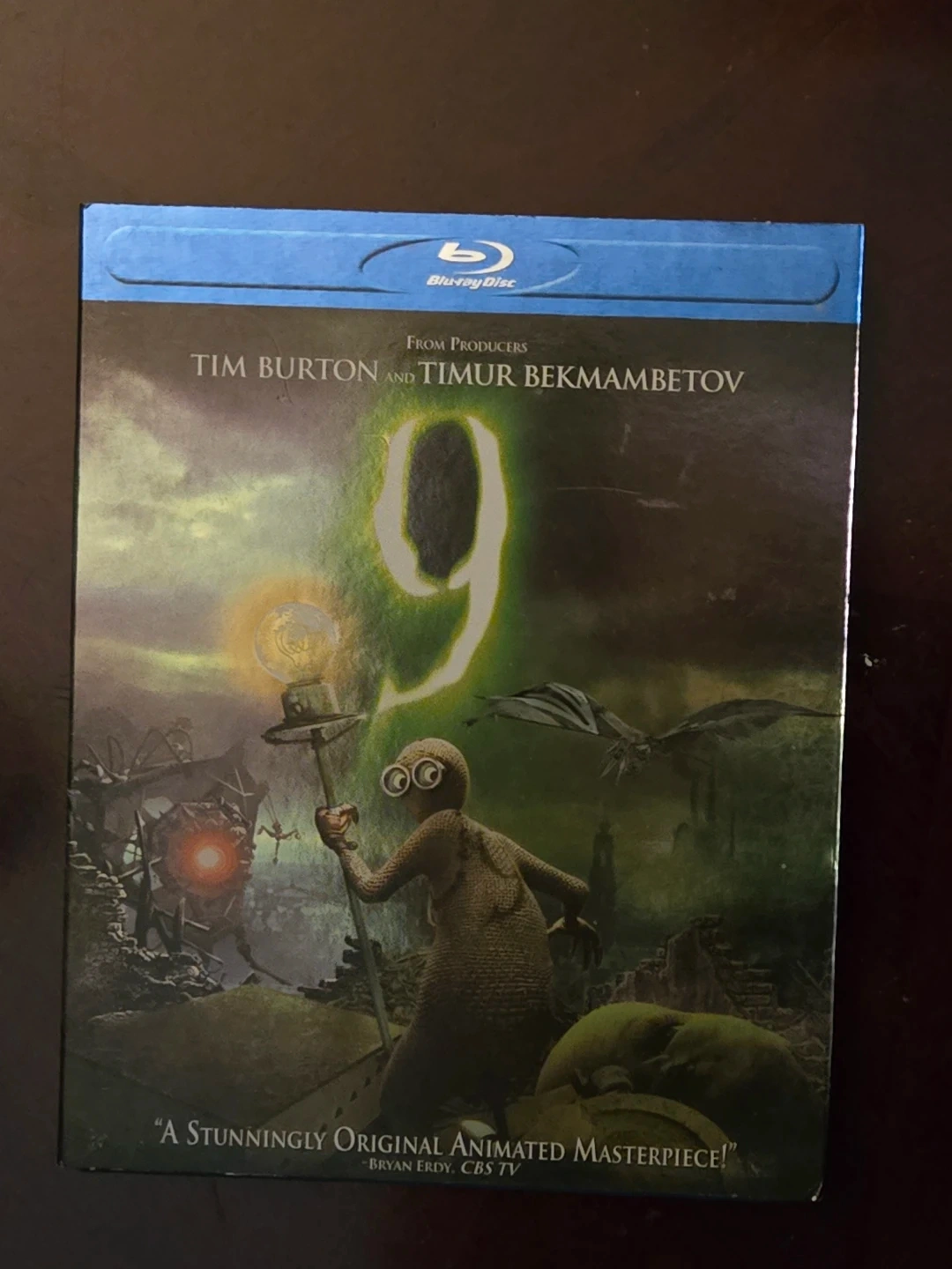 This is the Blu-ray disc for the animated movie 9. It's from producers Tim Burton and Timur Bekmambetov. This movie is an animated masterpiece!