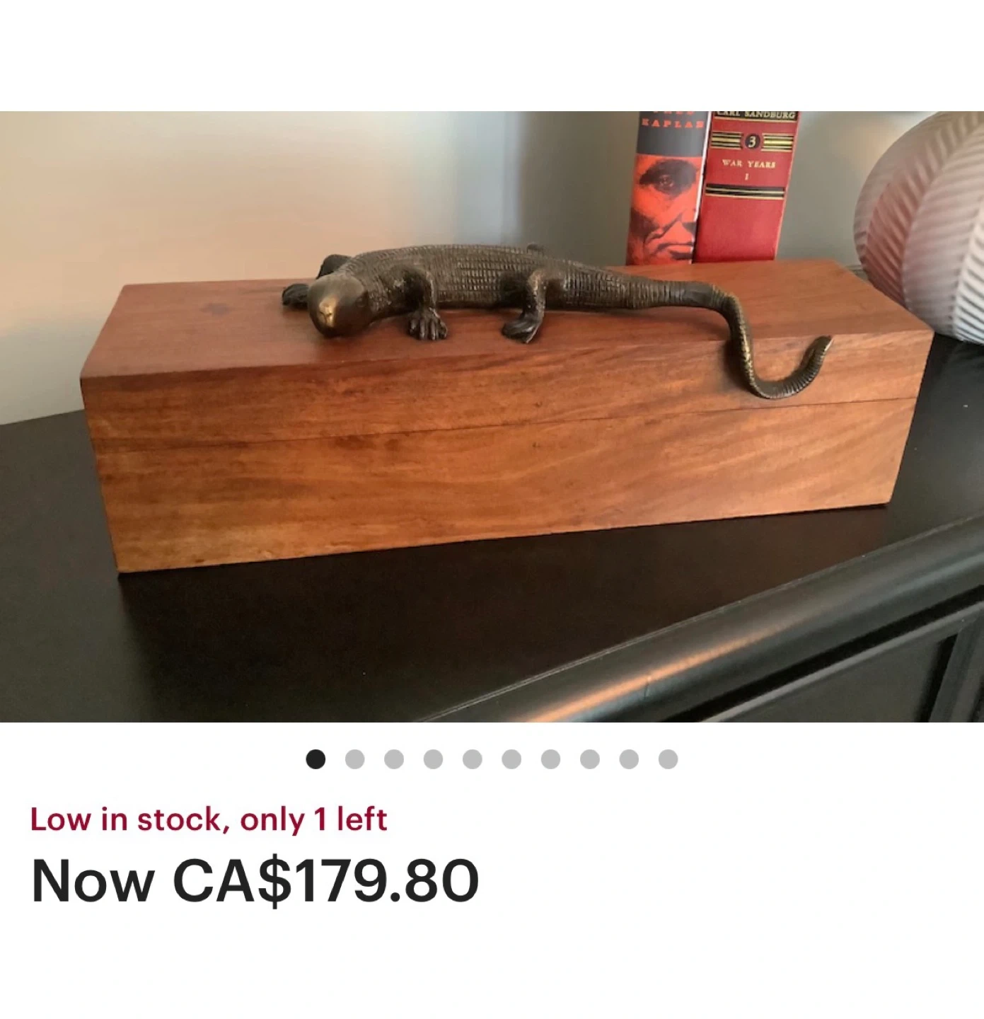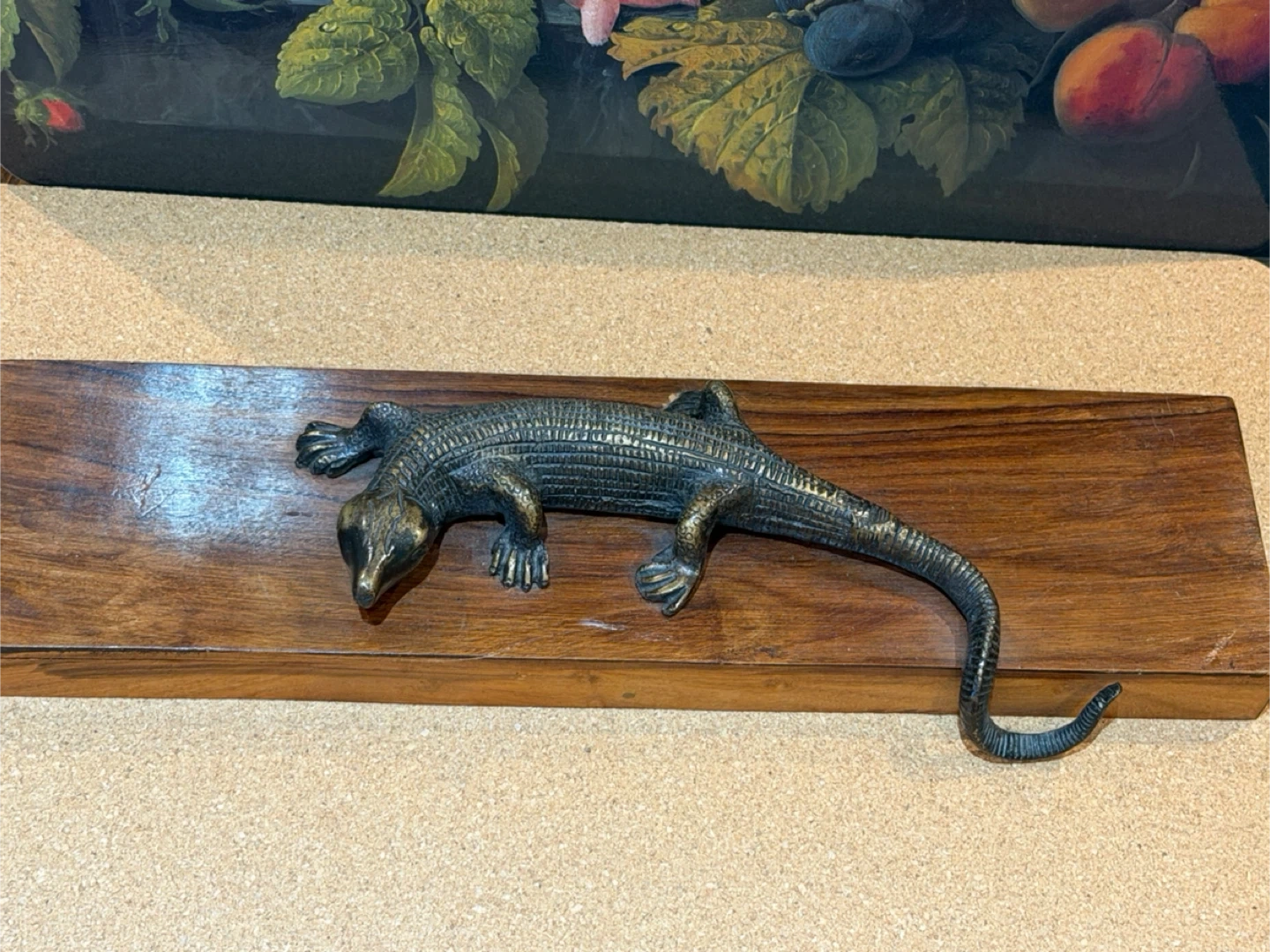 Vintage Walnut Wooden Lid only with Bronze Lizard Sculpture
