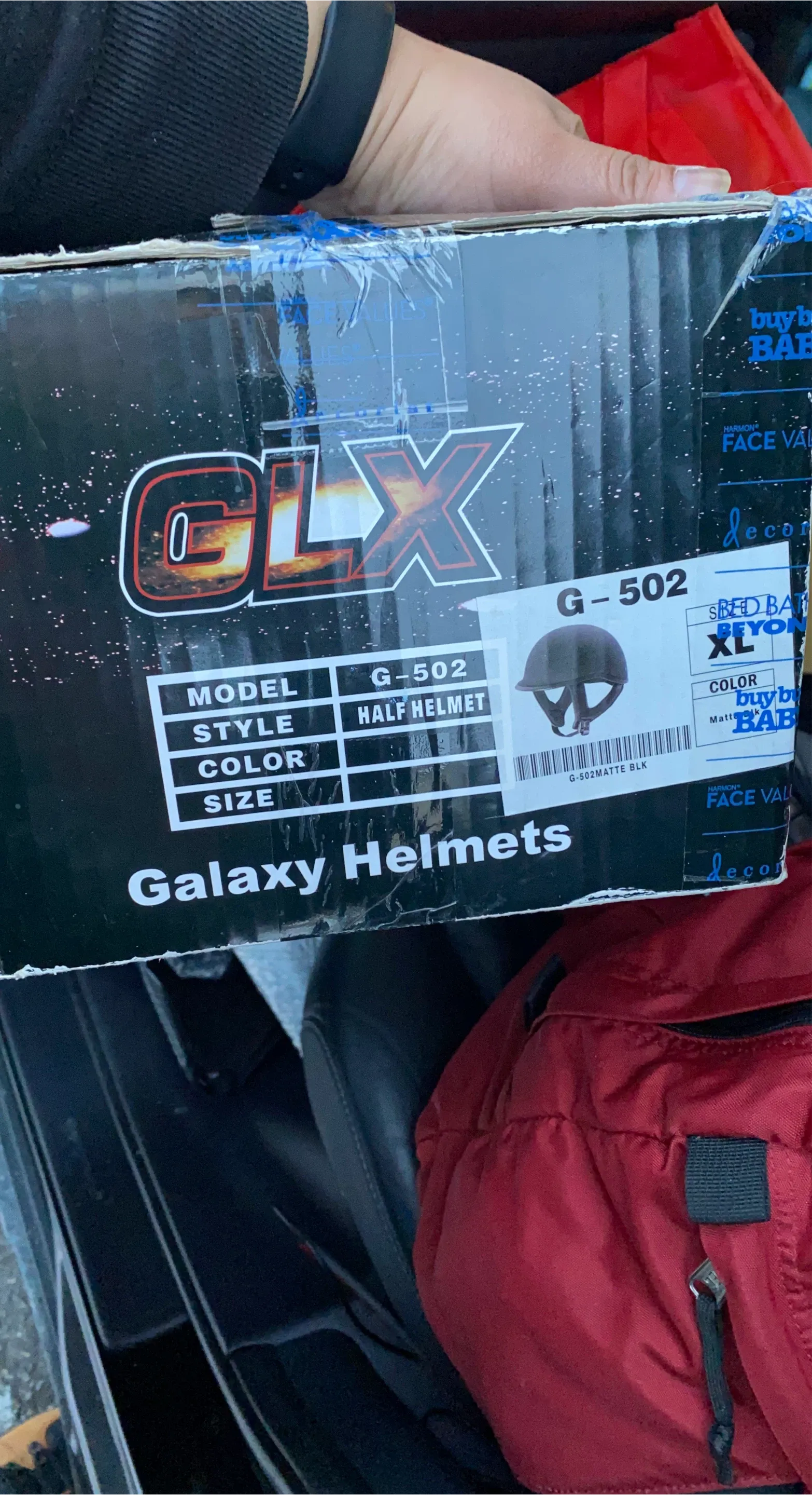 GLX G-502 half helmet for sale. It's a model G-502 in matte black. This helmet provides head protection.