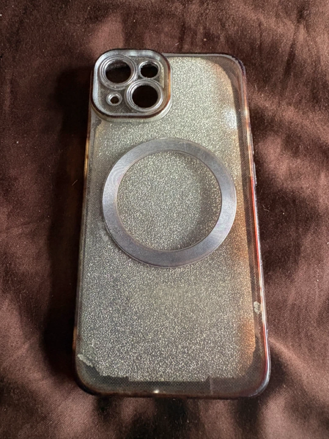 This sparkly clear phone case is designed for the iPhone 13 It has a built-in ring for MagSafe compatibility. Protect your phone with a bit of shine!